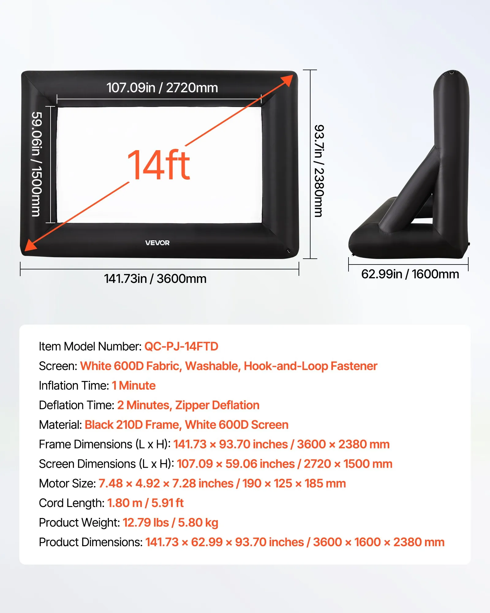 Nafukovacie filmové plátno vyrobené z 600D, premietacie plátno s prenosným úložným vreckom, 16:9, filmová projekcia pre domáce kino, párty a zábavu pri bazéne (378 x 160 x 317 cm)