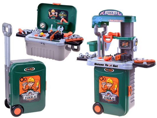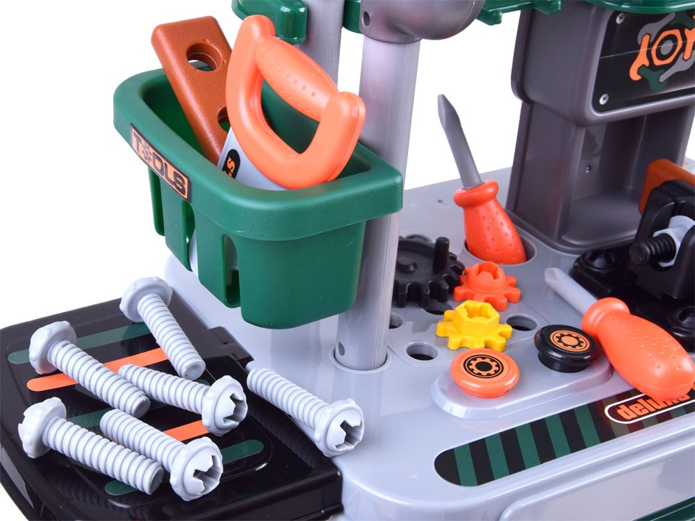 Táto viacdielna sada pre mladého kutilského nadšenca bude perfektným doplnkom do každej detskej garáže. Táto sada 3 v 1 obsahuje kufor, dielňu a pracovnú dosku pre mladého kutilského nadšenca. Celá sada je vyrobená z plastu a vďaka modulárnemu systému si dieťa samo vyberá, akú formu bude mať jeho dielňa.
