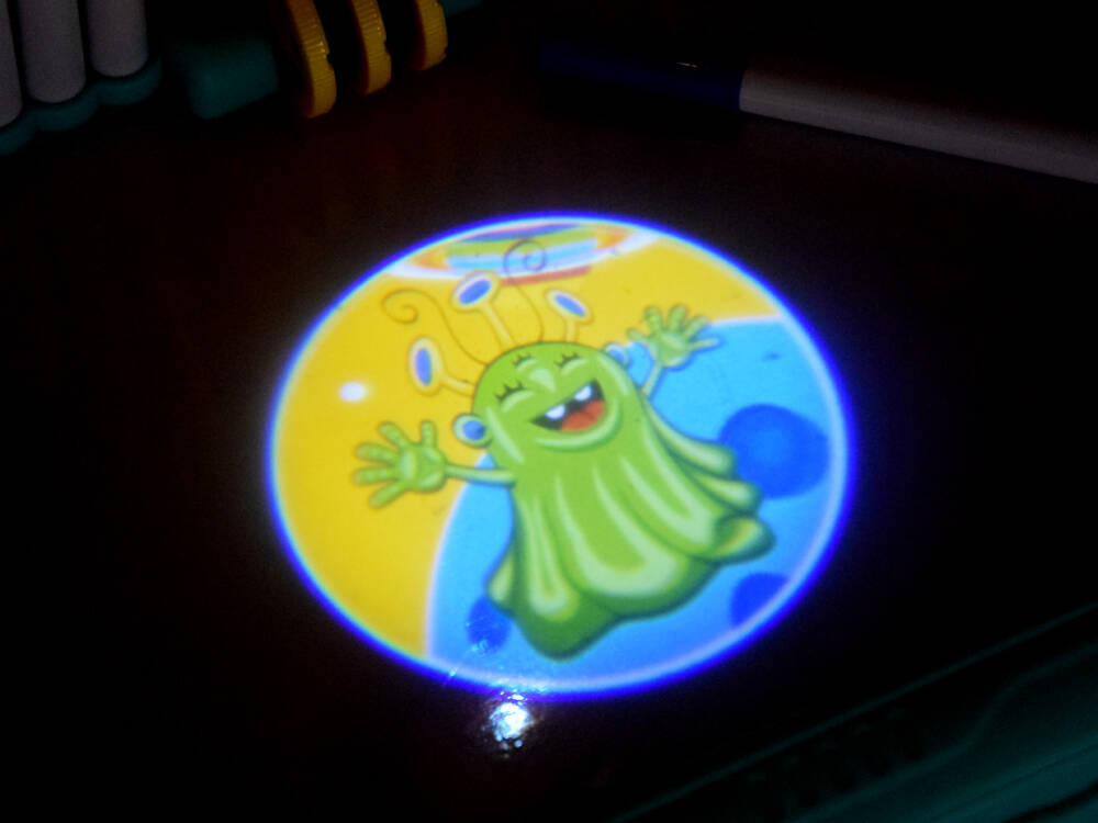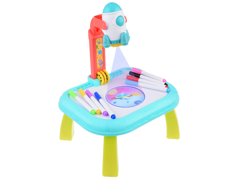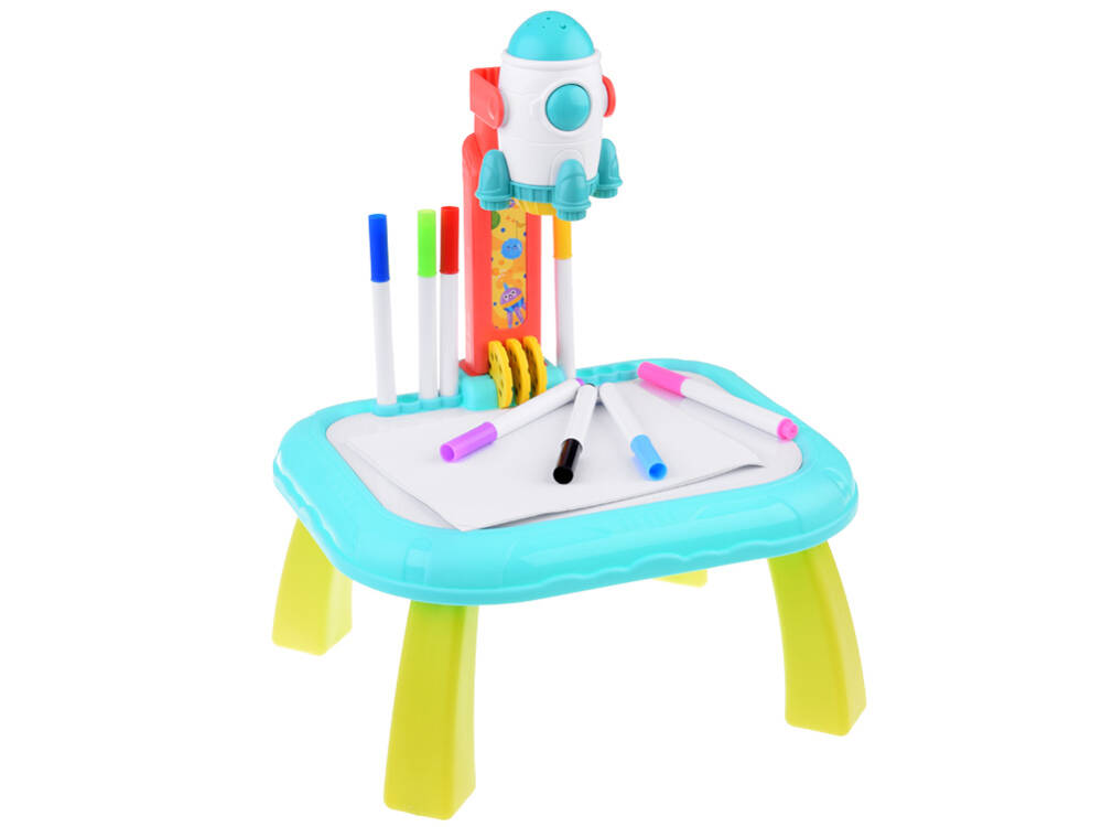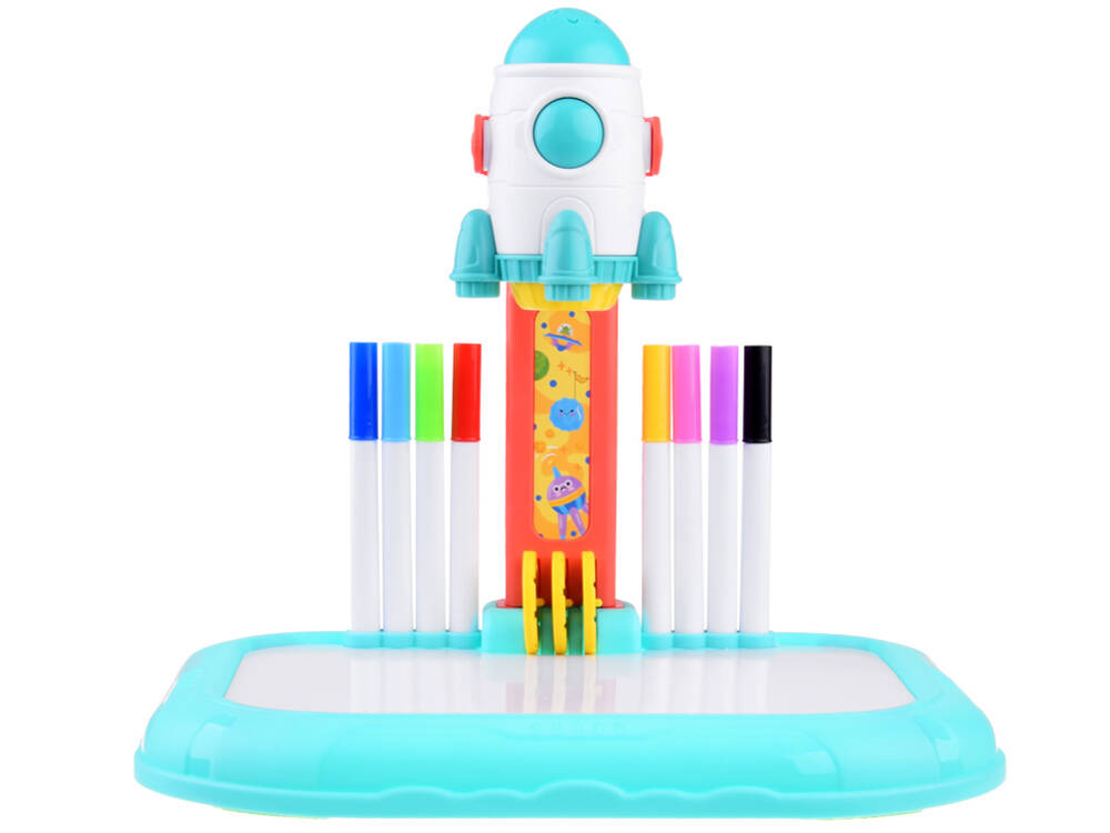 Projektor v tvare rakety s nastaviteľným uhlom sklonu a výškou ponúka možnosť kreslenia na tabuľu alebo premietania obrázkov na stenu , čo premení hru na skutočné vesmírne dobrodružstvo.