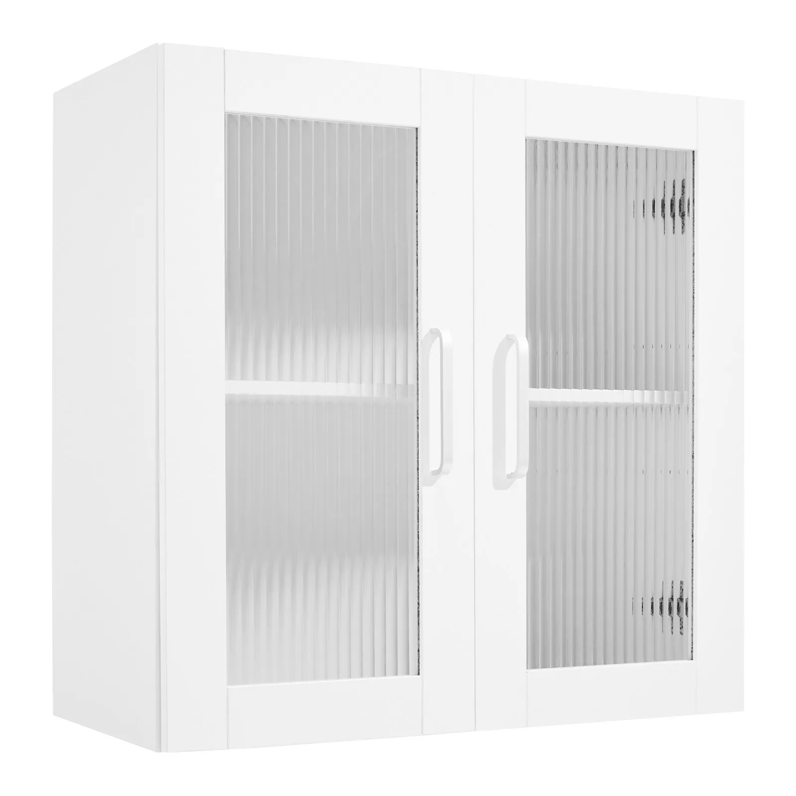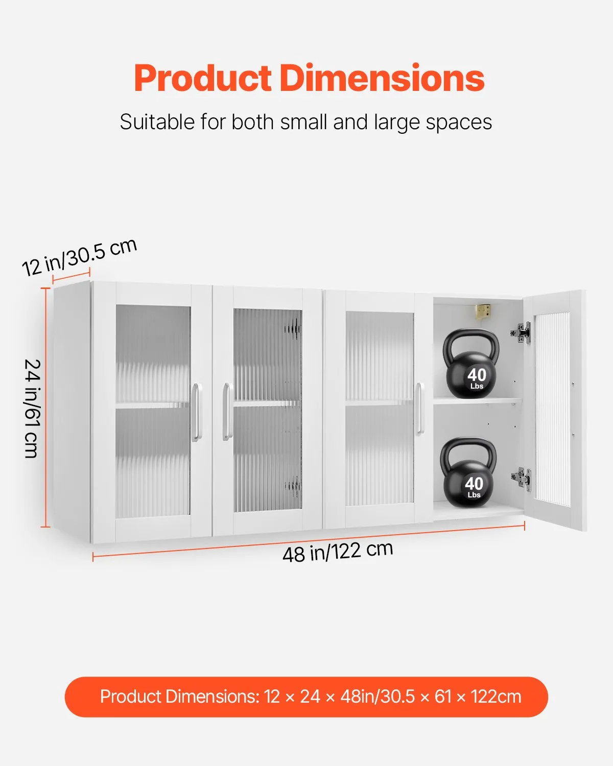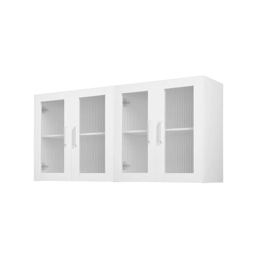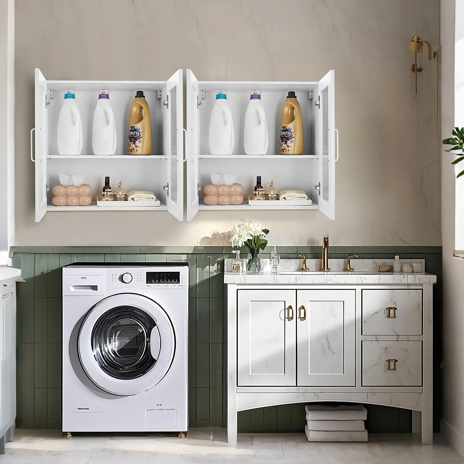 Nástenná skrinka do práčovne, 2-poschodová nástenná skrinka (nosnosť 72,6 kg / 30,5 x 61 x 61 cm samostatná jednotka) so 4 dverami, organizér na skrinky s nastaviteľnou policou, do kuchyne a garáže