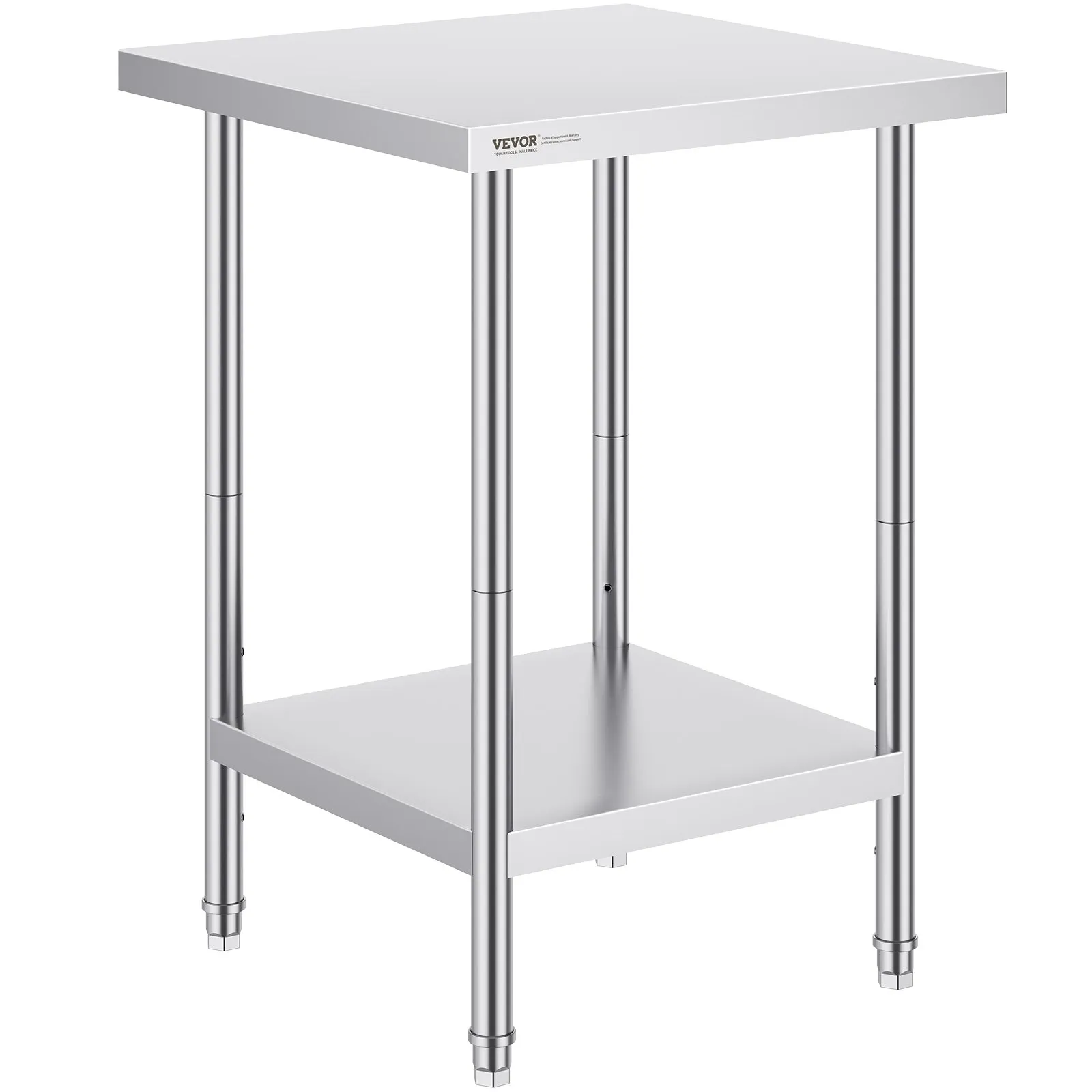Vysokokvalitná nehrdzavejúca oceľ: Tento pracovný stôl s rozmermi 610 x 610 x 864 mm (24 x 24 x 34 palcov) je vyrobený z nehrdzavejúcej ocele SUS201, čo sa týka dosky, políc a nôh. Ponúka vynikajúcu odolnosť voči hrdzi, elegantný vzhľad a hladký povrch, ktorý sa ľahko čistí jedným utretím.