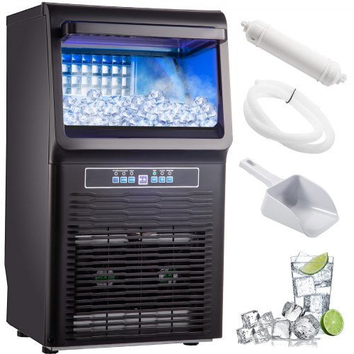 Ľahké zapojenie a používanie – Náš stolový výrobník ľadových kociek sa dodáva s vodným filtrom, ktorý sa ľahko pripája a spoľahlivo filtruje. S pomocou spojovacieho zariadenia, ktoré dokáže premeniť vodu z vodovodu na pitnú čistú vodu, by výrobník ľadu správne fungoval na rôznych miestach, kdekoľvek je pripravený prívod vody a napájací kábel. K dispozícii je aj odtoková rúrka a naberačka na ľad. Prvú možno pripojiť k výstupu na vypúšťanie zvyšnej vody a druhá je vhodná na vyberanie ľadu.