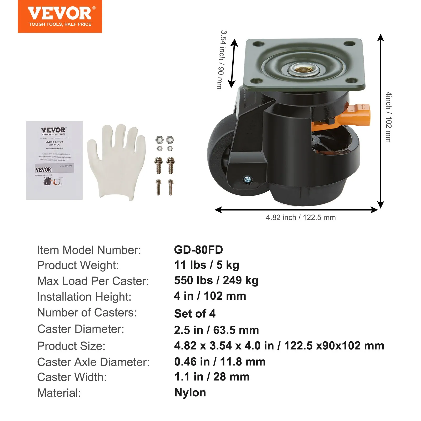 Zlepšite si výšku: Rozlúčte sa s vratkými stolmi! Naša ľahko otočná rukoväť umožňuje nastaviť výšku každého kolieska pre mimoriadne plynulé vyrovnanie. Tieto kolieska nie sú len výškovo nastaviteľné; menia vám život.
