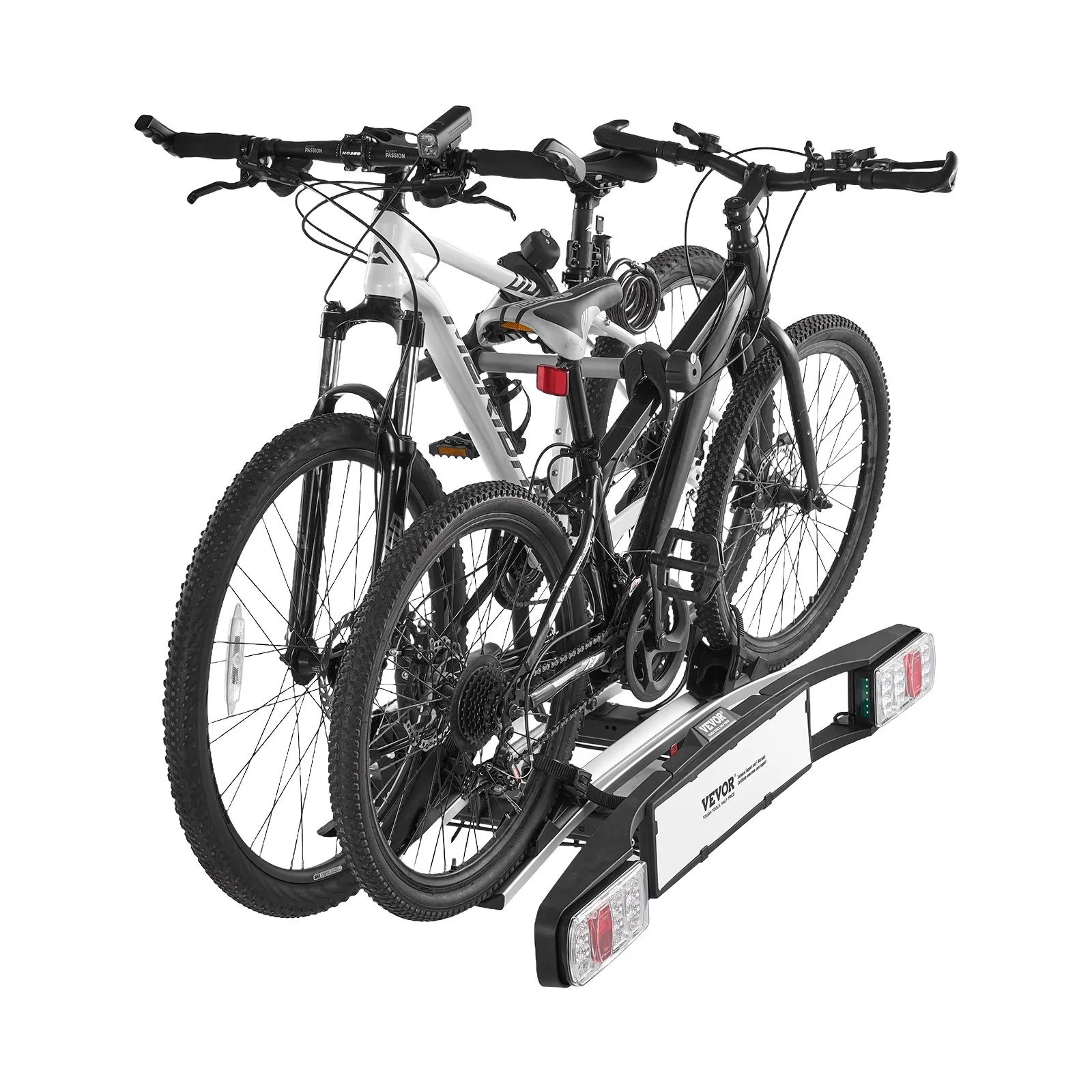 Nosič bicyklov s uchytením vhodný pre montáž 5 cm, zadný nosič bicyklov pre 2 bicykle s nosnosťou do 65 kg, uzamykateľný nosič bicyklov pre elektrobicykle so zadným svetlom