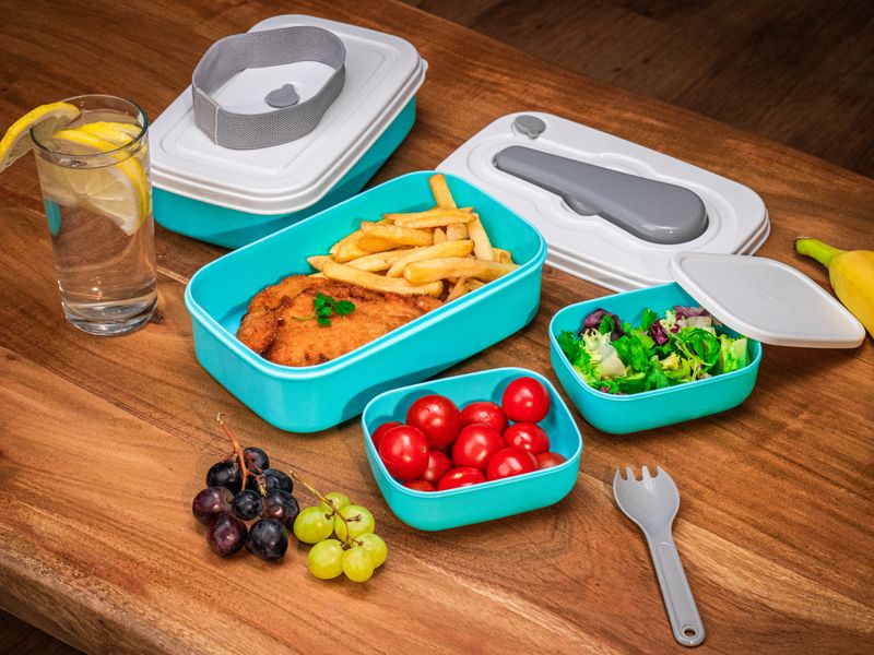 Obedár MagicHome, hranatý, 2 dielny, s vidličkou/lyžicou, 2x 1000 ml, 20,8×13,5×12,4 cm