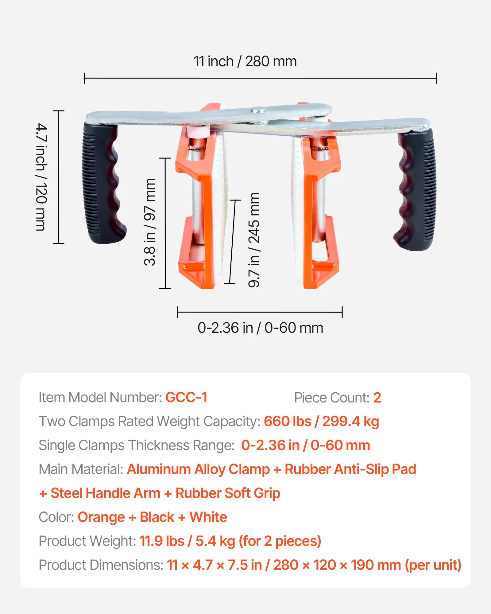 Efektívna preprava panelov: Manipulujte s ťažkými materiálmi bez námahy! Táto dvojica zdvíhacích svoriek unesie až 300 kg. Ideálne na stavbu a rekonštrukciu. Pre plynulú, stabilnú a bezpečnú manipuláciu sú potrebné dve osoby.
