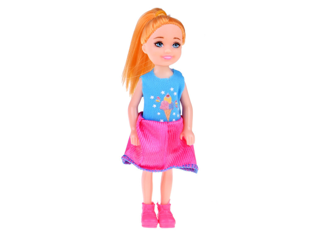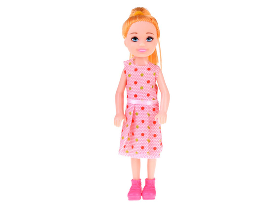 Malá bábika na hranie. Táto 13 cm vysoká bábika bude perfektným spoločníkom pre každé dievčatko. Vďaka svojej malej veľkosti môže bábika cestovať s dievčatkom do škôlky, k lekárovi alebo sa zmestí do akéhokoľvek batohu či kabelky na prechádzku. Bábika je vyrobená celá z plastu, má gumenú hlavu a blond vlasy zopnuté do copu.