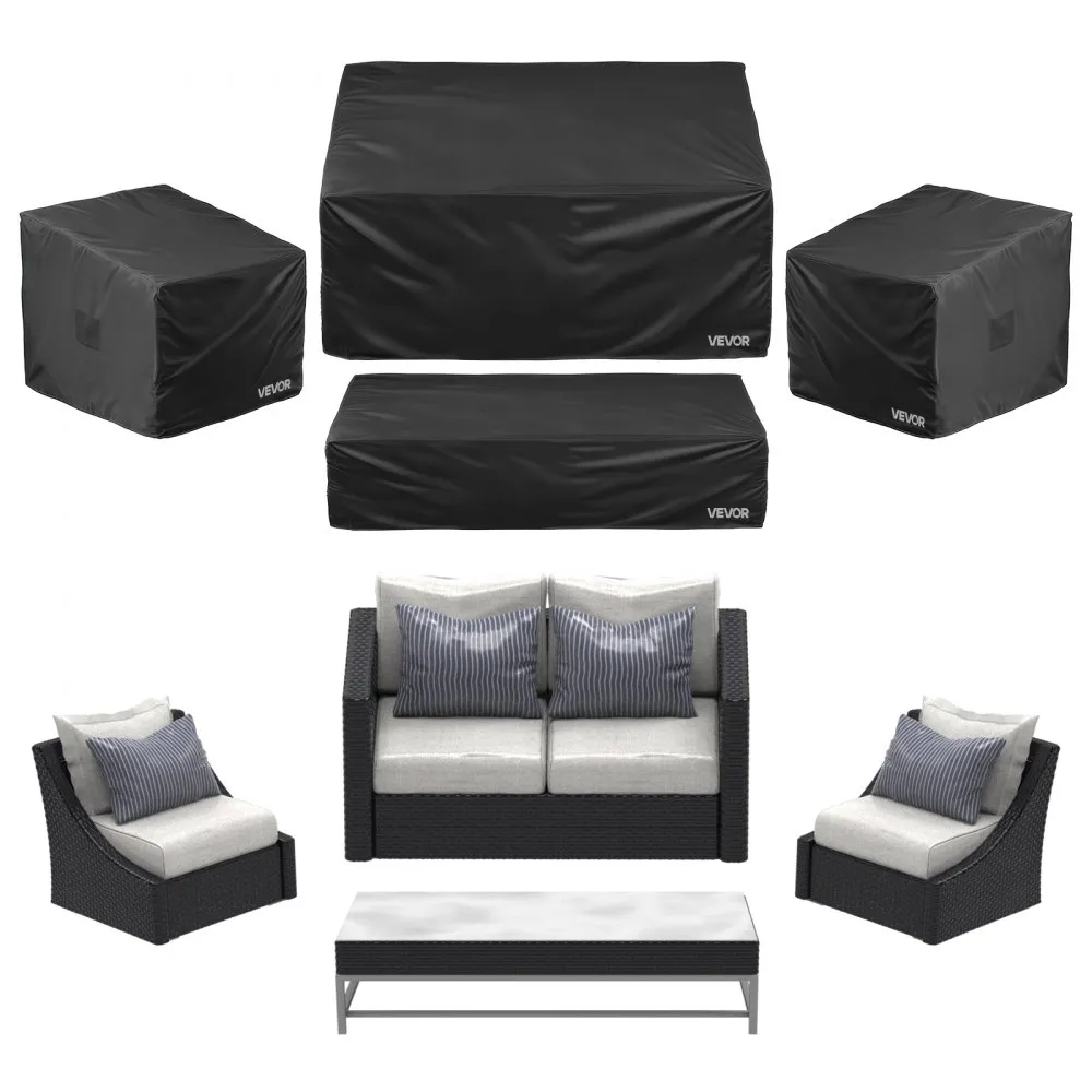 Univerzálna veľkosť: Táto 4-dielna sada poťahov na záhradný nábytok je vhodná pre väčšinu kusov nábytku, ako sú konferenčné stolíky, stoličky, pohovky, gauče a ďalší. Ponúka komplexnú ochranu a úplné pokrytie. Skontrolujte rozmery vášho nábytku, aby ste sa uistili, že vám správne sedí.