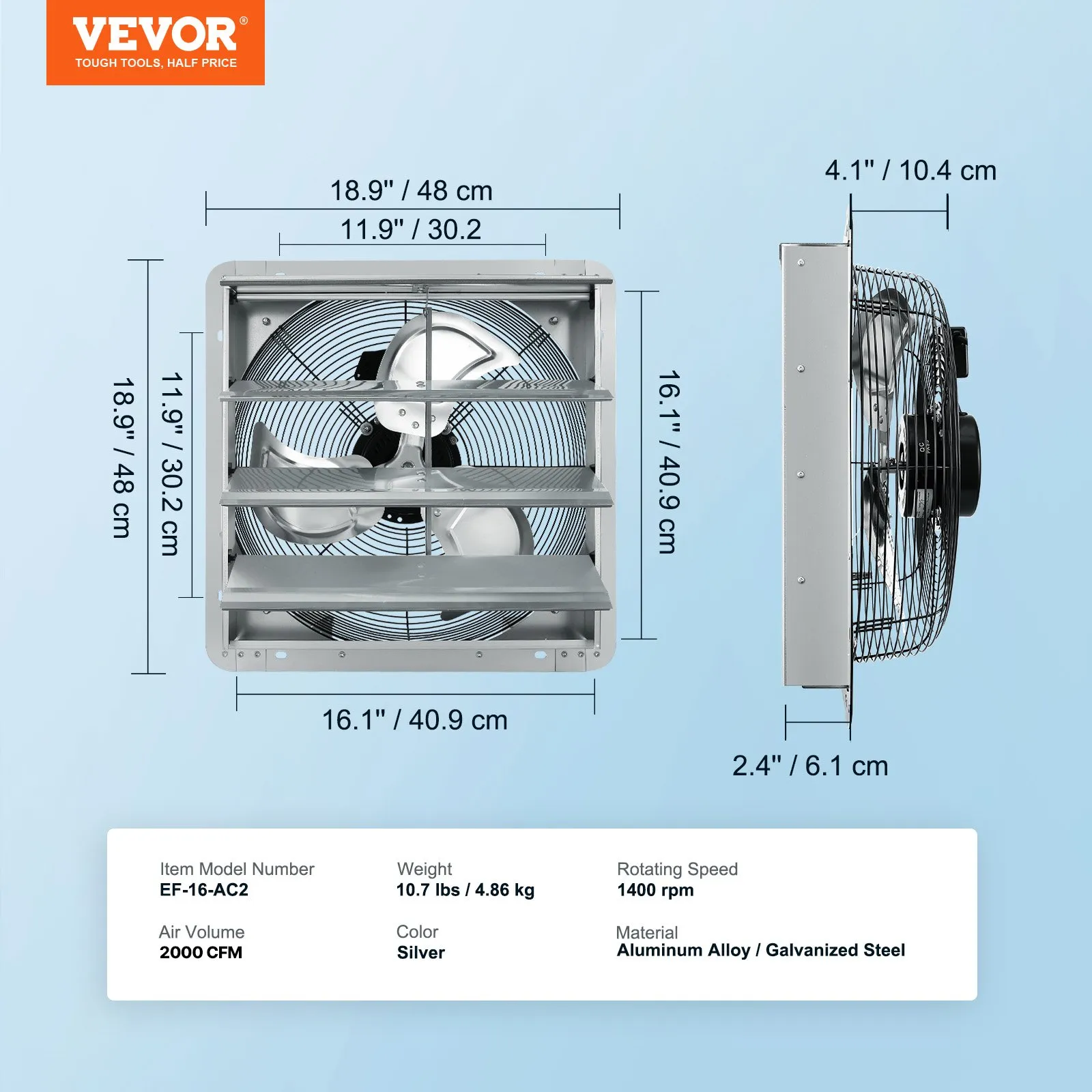 Odsávací ventilátor, 406 mm, 1400 ot./min., 1506 CFM, hliníkový nástenný ventilátor s AC motorom, vetranie a chladenie pre skleníky, garáže, prístrešky, obchody