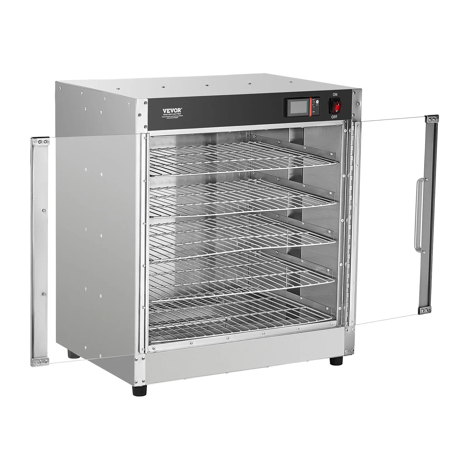 Ohrievač potravín Hot Box, 5-poschodový ohrievač na občerstvenie s miskou na vodu, 5 panvíc, dvojité sklenené dvere a nastaviteľné police, nerezová ohrievacia skrinka na potraviny, ideálna na skladovanie pizze, kuracieho mäsa a reštauračných jedál