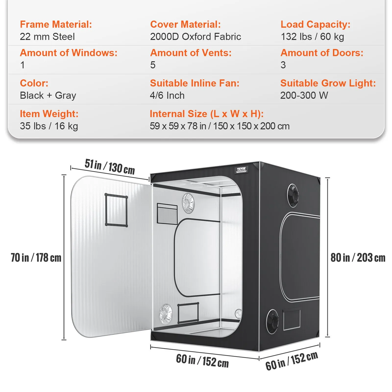 • Jednoduché použitie: Náš pestovateľský stan s rozmermi 5 x 5 stôp má priehľadné okienka, ktoré vám umožňujú kedykoľvek sledovať vaše rastliny. Aby sa zabránilo prenikaniu svetla, okná sú obklopené 40 mm hrubou suchým zipsom. Pre jednoduchú údržbu a okamžité použitie stanu sme priložili aj odnímateľný podnos a tašku na náradie.