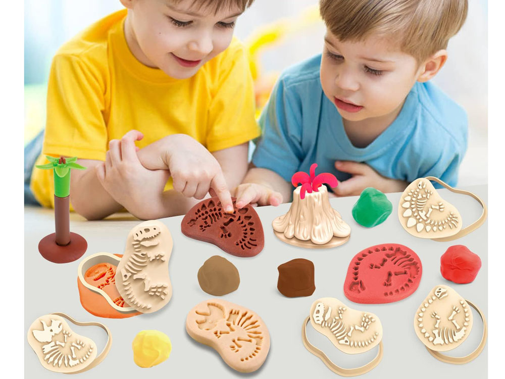 Táto sada plastelíny je skvelou zábavou pre každé dieťa, ktoré miluje miesenie. Hra s plastelínou podnecuje detskú fantáziu a stimuluje kreativitu, čím ponúka nekonečné kreatívne možnosti. To všetko je možné vďaka jednoduchému a bezpečnému príslušenstvu a nástrojom. Táto sada vám umožní vstúpiť do sveta archeológov, ktorí skúmajú prehistorický svet dinosaurov. Jednoducho rozvaľkajte plastelínu na tenkú vrstvu a naneste na ňu formičku s vybraným vzorom fosílie dinosaura.