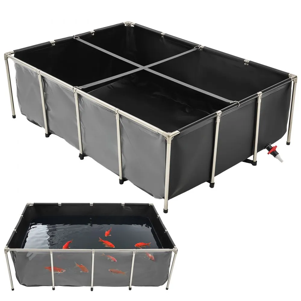 Plátenné rybník, akvárium s objemom 1781,3 l, PVC nádrž na koi s priehľadným okienkom, akvárium s rámom z nehrdzavejúcej ocele a vypúšťacím ventilom, na chov koi kaprov a zlatých rybiek (čierne)