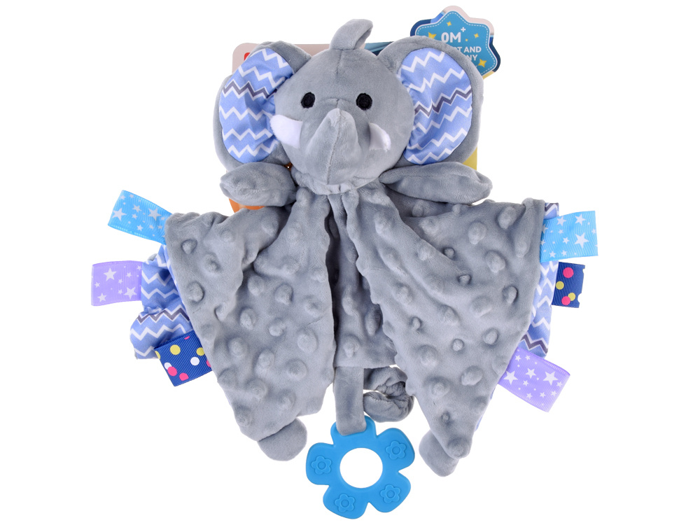 Plyšová hračka slon s visačkami a hryzátkom je upokojujúca hračka pre najmenšie deti. Táto mäkká, prítulná hračka je rozkošná, starostlivo vyrobená a krásne navrhnutá. Túto hračku možno používať už od prvých dní života. Bábätká milujú objavovanie prvkov, ktoré môžu chytiť, rozdrviť, ťahať a ochutnať. Visačky na hračke umožňujú bábätkám dotýkať sa, ťahať, hrýzť a ťahať atď. Okrem visačiek obsahuje hračka aj hryzátko, ktoré je ideálne na masáž boľavých ďasien. Materiál, z ktorého je slon vyrobený, je na dotyk mäkký a úplne bezpečný pre bábätká. Pre zlepšenie hry má v ručičkách skryté pískadlá, ktoré tiež vzbudia ich zvedavosť.