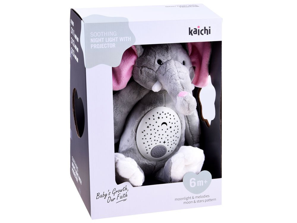 Tento plyšový slon s projektorom a zvukovými efektmi je ideálny pre najmladších členov rodiny. Vyrobené z mäkkého, sivého plyšu s ružovými ušami,