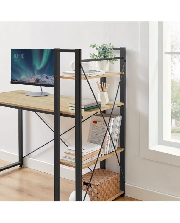 Tento počítačový stôl z dubového dreva Sonoma s policou a policami je funkčný a moderný kus nábytku , ktorý sa bude perfektne hodiť do kancelárie, pracovne alebo detskej izby. Je vybavený praktickými policami a poskytuje dostatok priestoru na uloženie dokumentov, kníh a kancelárskych potrieb . Nastaviteľné nohy umožňujú rovnomerné vyrovnanie stola na nerovnej podlahe , čím sa zvyšuje jeho stabilita. Jeho pevná konštrukcia a estetická úprava zaručujú  odolnosť a štýlový vzhľad.
