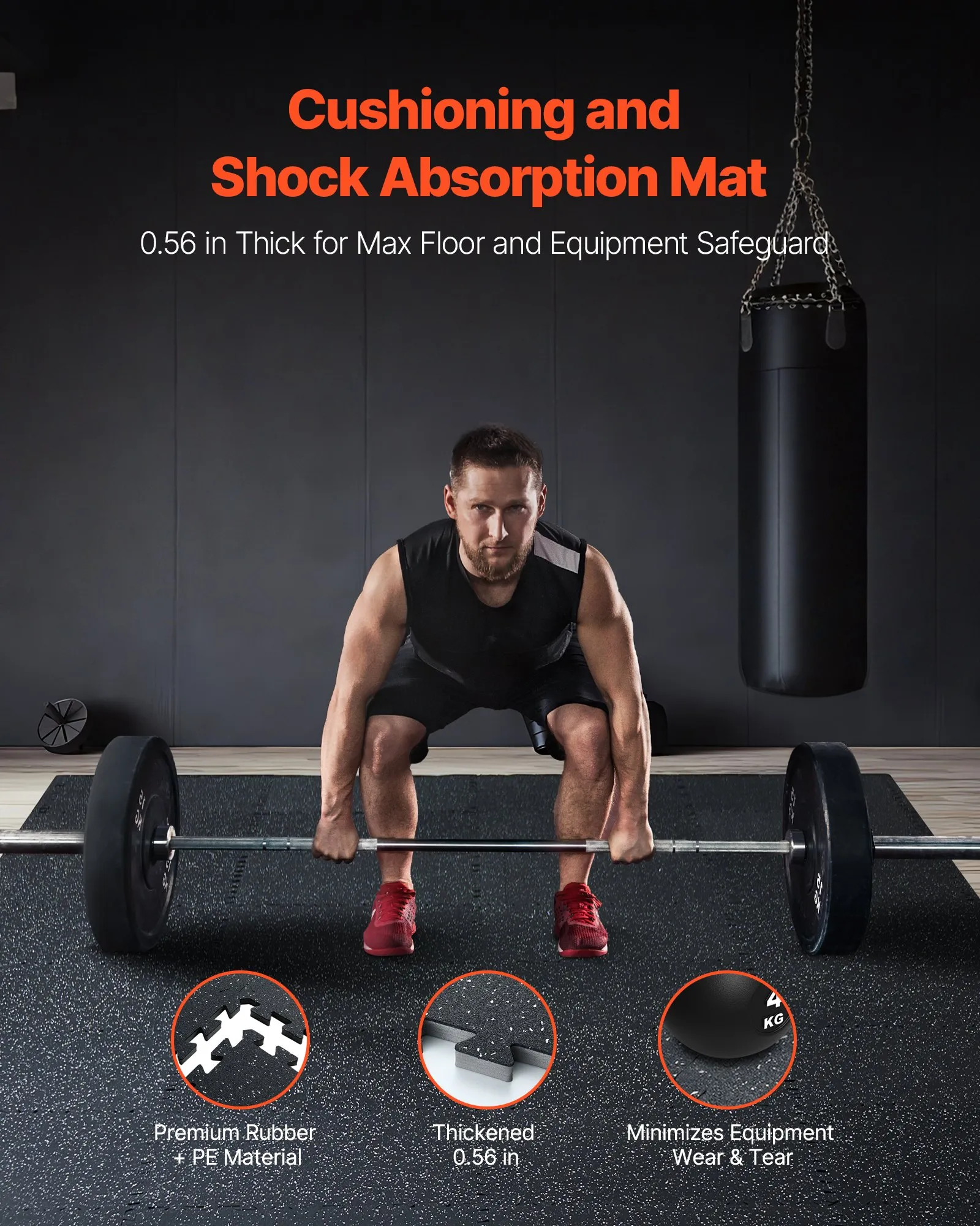 Vylepšený materiál: Podložka je vyrobená z materiálu 2 v 1 s gumovým povrchom s hrúbkou 1,42 cm a penou EVA, ktorá poskytuje vynikajúcu protišmykovú ochranu. Táto fitness podlaha pre domáce posilňovne účinne absorbuje nárazy a odrazy a zároveň ponúka dostatočnú priľnavosť pre bezpečné cvičenie.