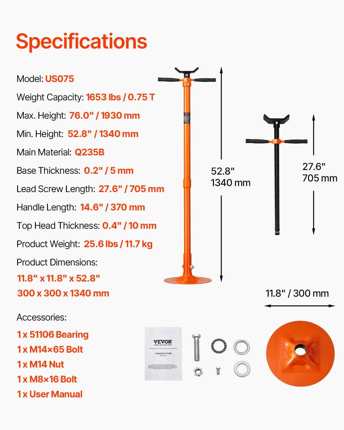 • Pôsobivá nosnosť 750 kg: Tento stojan so zdvíhaním pod podlahou unesie hmotnosť 0,75 t. Robustný rúrkový oceľový rám zabraňuje deformácii alebo krúteniu. Na použitie sú potrebné minimálne dva stojany a dokáže uniesť väčšinu malých áut a podobných vozidiel.