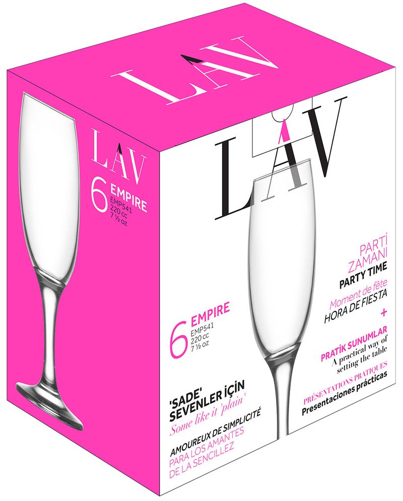 Pohár Empire, LAV, sklenený, na šampanské, 220 ml, 49×210 mm, bal. 6 ks