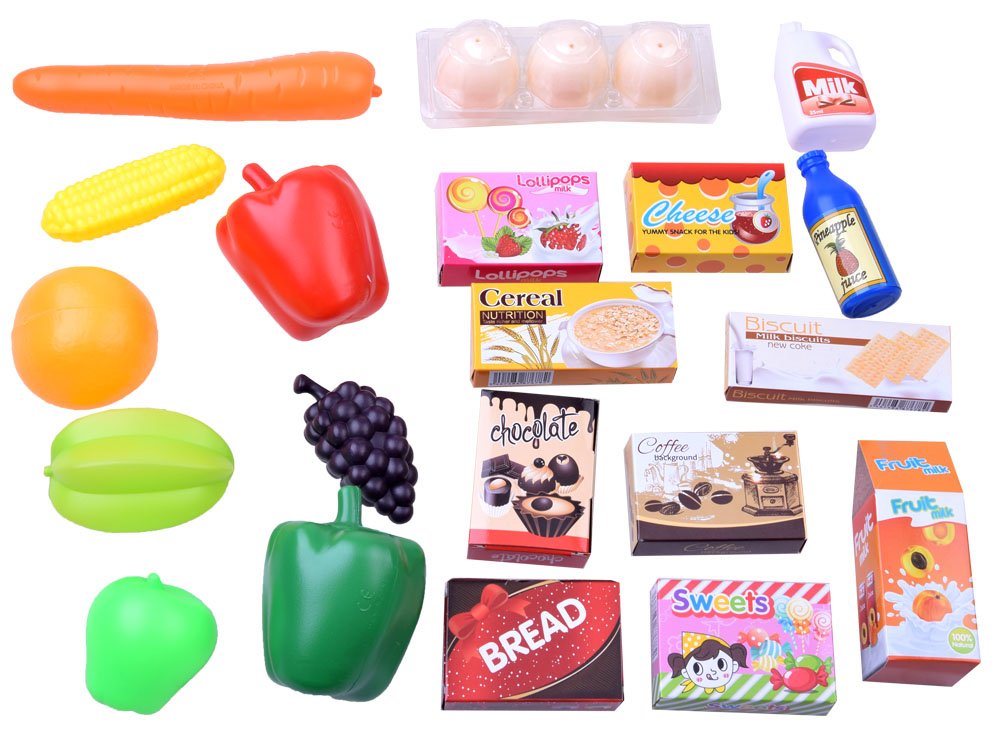 Fantastický nápad na hranie, nakupovanie a predaj. Hrou na obchod sa dieťa ľahko a príjemne naučí pravidlá nakupovania, hodnotu peňazí a pod. Deti milujú vzdelávacie hry, v ktorých môžu napodobňovať dospelých. Tento SUPERMARKET je určený pre deti, ktoré majú rady vzdelávacie hry.Súprava obsahuje 24 kusov:- pokladňa- hmotnosť – čítačka-skener- nákupný košík- bankovky- zelenina (mrkva, kukurica, červená a zelená paprika)- ovocie (hrozno, pomaranč, jablko, exotická karambola)- vajcia- kartónové obaly napodobňujúce zmrzlinu, kávu, pizzu, cukríky, jogurt- plastový obal imitujúci mlieko, pomarančový džús, konzervované ovocie- cenové nálepky- množstvo políc a košíkov na potravinárske výrobky