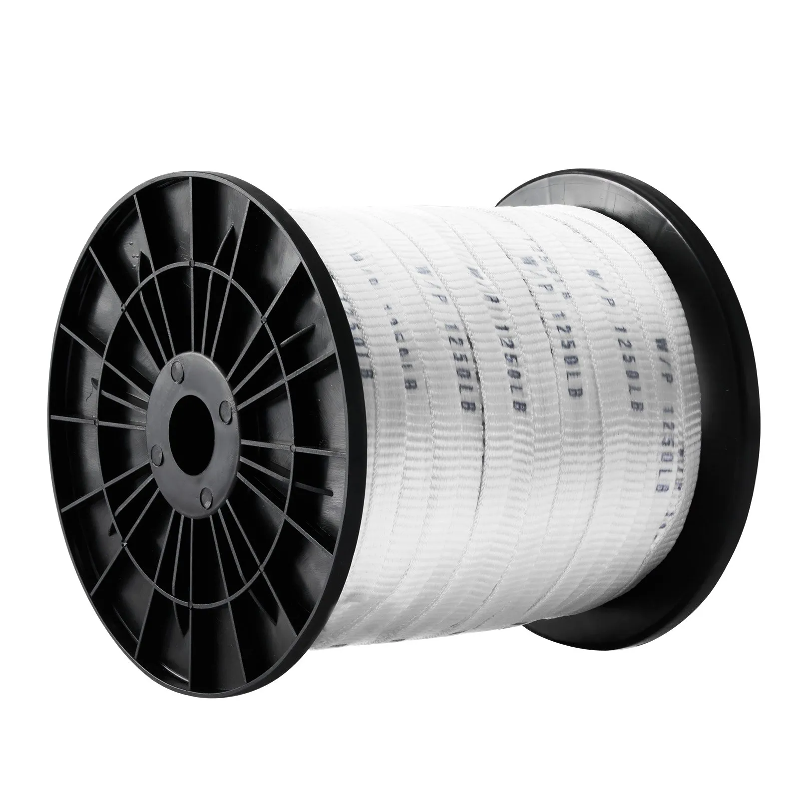 Polyesterový ťahací popruh, 160,9 m x 1,3 cm, ťažná kapacita 567 kgf, potlačený káblový ťahací popruh na balenie, záhradníctvo, komerčné elektroinštalačné práce, káblové práce, biely