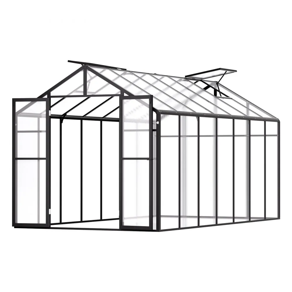 • Zosilnený hliníkový rám: Záhradný skleník je vyrobený s hrubším a pevnejším čiernym hliníkovým rámom, ktorý je ľahký, ale zároveň mimoriadne odolný, s nerezovými skrutkami pre dlhšiu životnosť a lepšiu odolnosť voči nepriaznivým poveternostným podmienkam.