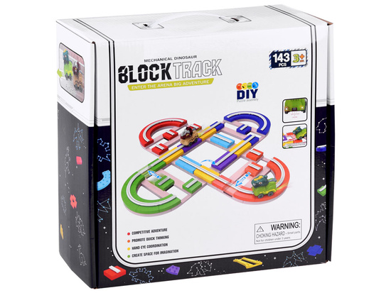 Autodráha s dinosaurami je kreatívna sada pre mladých staviteľov. Sada obsahuje 143 dielikov na zostavenie dráhy a dve autá s hlavami dinosaurov. Je to fantastický zážitok zo stavania kociek. Hračku je možné umiestniť na rovný povrch v ľubovoľnej konfigurácii, aby sa zabezpečila nepretržitá hra, a tiež ju je možné pripevniť na zvislú, hladkú a rovnú stenu pomocou prísaviek.