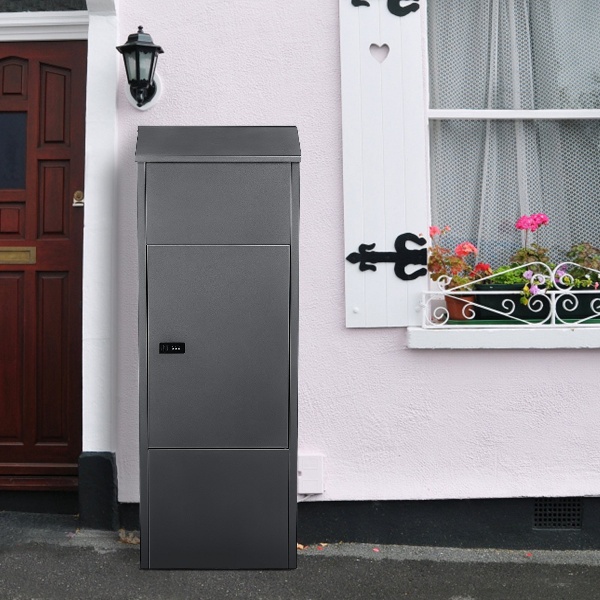 Rozmery schránky: Táto schránka na balíky má veľkorysý úložný priestor. Celkové rozmery: 38 x 23 x 105 cm; rozmery dverí: 34,3 x 50 cm. Je ideálna pre ľudí, ktorí pracujú z domu, cestujú alebo v každodennom živote prijímajú veľa korešpondencie a balíkov.