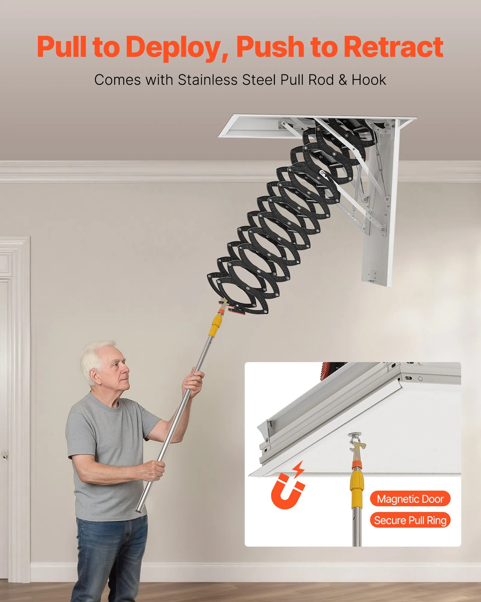Bezproblémové otváranie a zatváranie: Vrátane tiahla a krúžku – nie je potrebné žiadne ďalšie náradie ani nastavovanie výšky. Na otvorenie jednoducho potiahnite a potom zložte pomocou tiahla. Magnetický panel dverí sa bezpečne zatvára a hodí sa k moderným štýlom stropov.