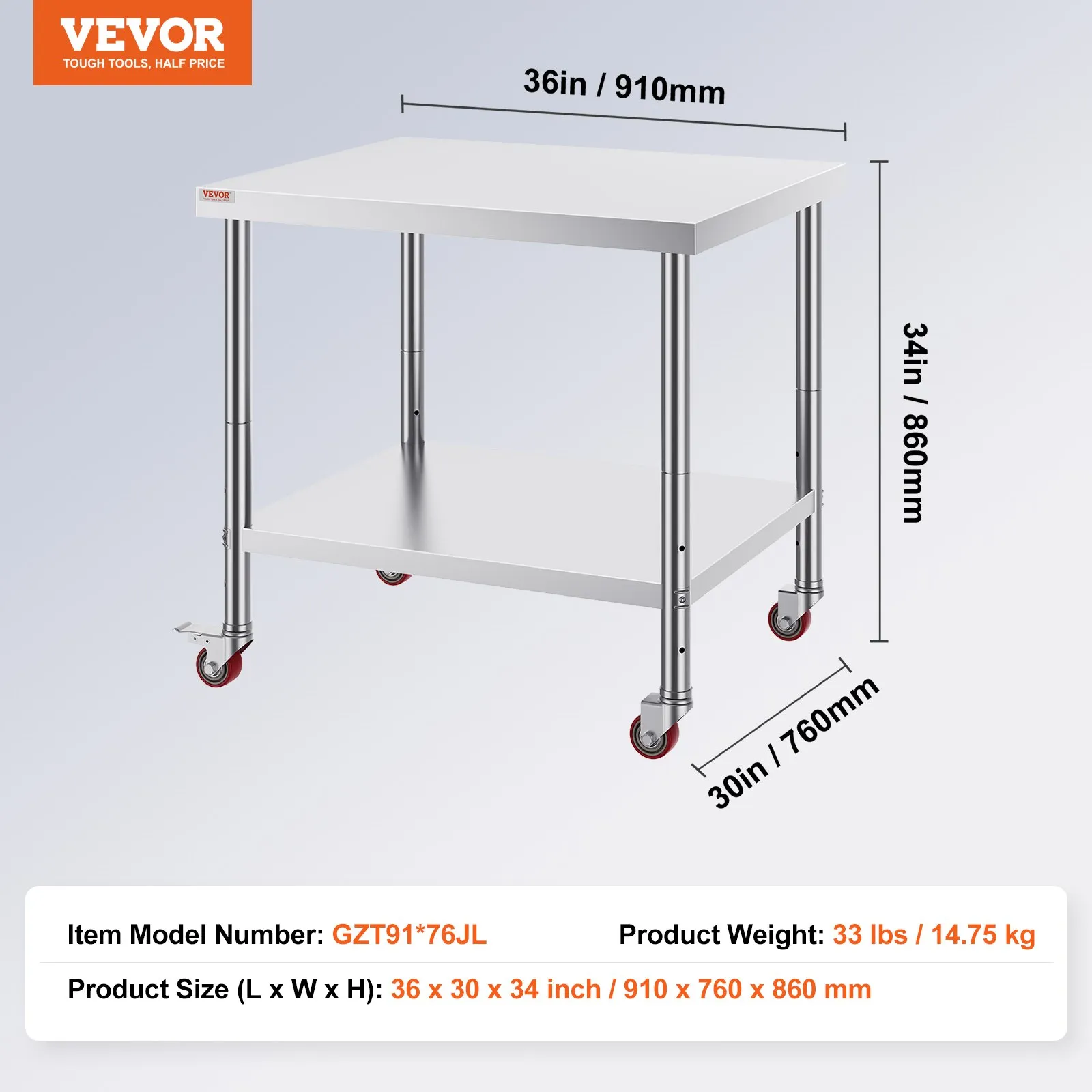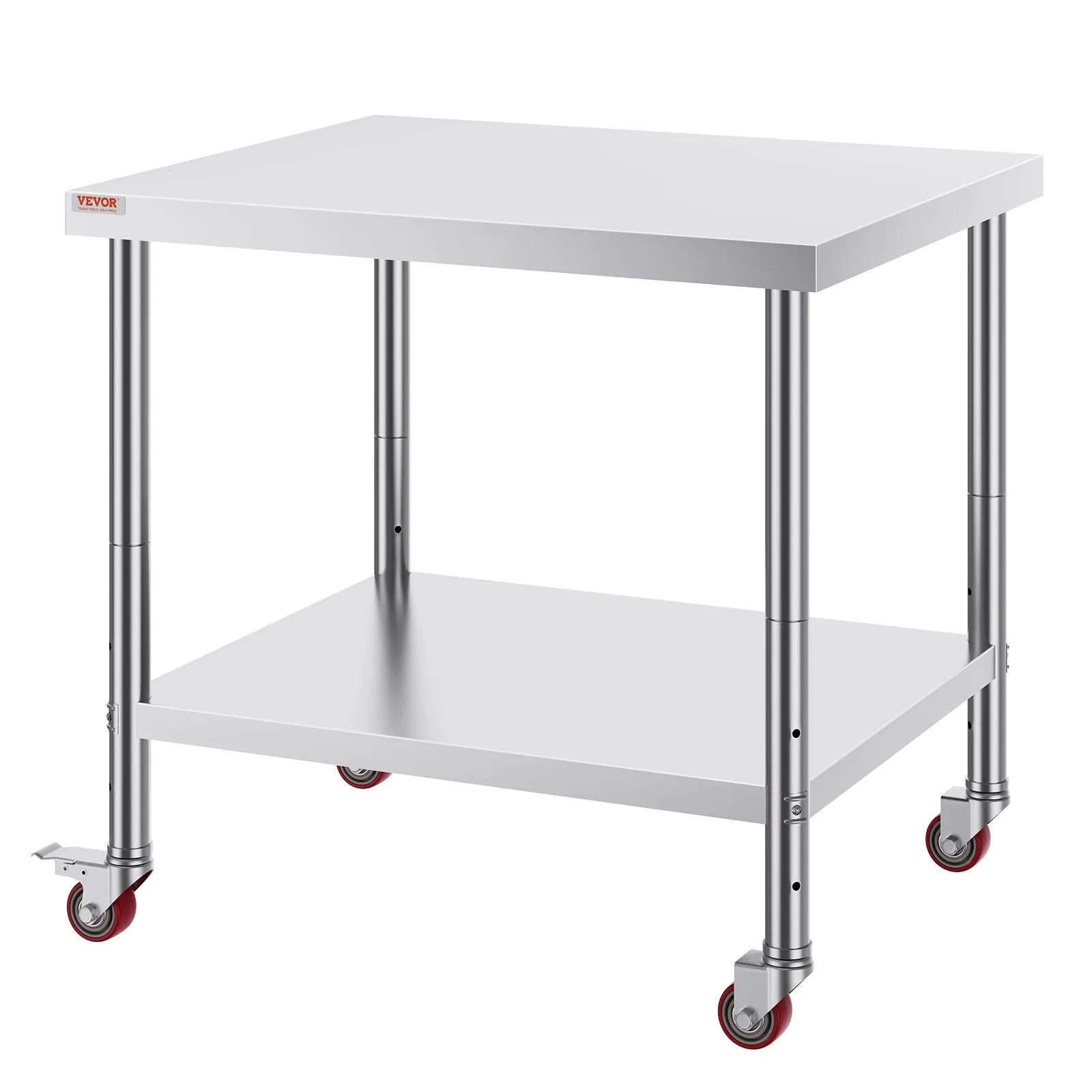 Pracovný stôl VEVOR 91 x 76 x 82 cm, nerezový cateringový stôl, nosnosť cca 160 kg, stôl na prípravu jedla, komerčný pracovný stôl do kuchyne, baru, reštaurácie, 4 nastaviteľné nohy