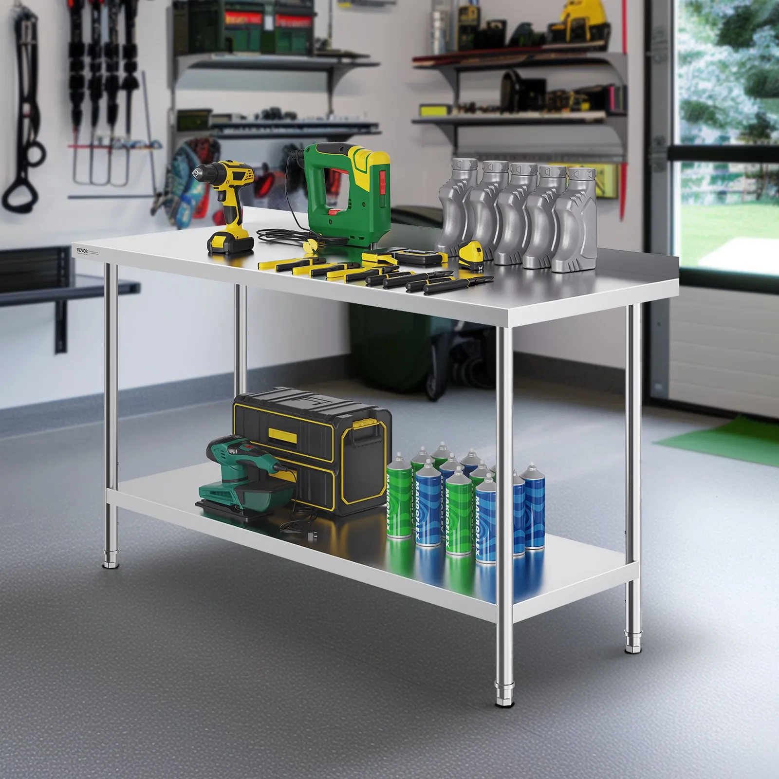 Vysokokvalitná nehrdzavejúca oceľ: Tento pracovný stôl s rozmermi 610 x 1524 x 914 mm je vyrobený z nehrdzavejúcej ocele SUS201, čo sa týka dosky, políc a nôh. Ponúka vynikajúcu odolnosť voči hrdzi, elegantný vzhľad a hladký povrch, ktorý sa ľahko čistí jednoduchým utretím.