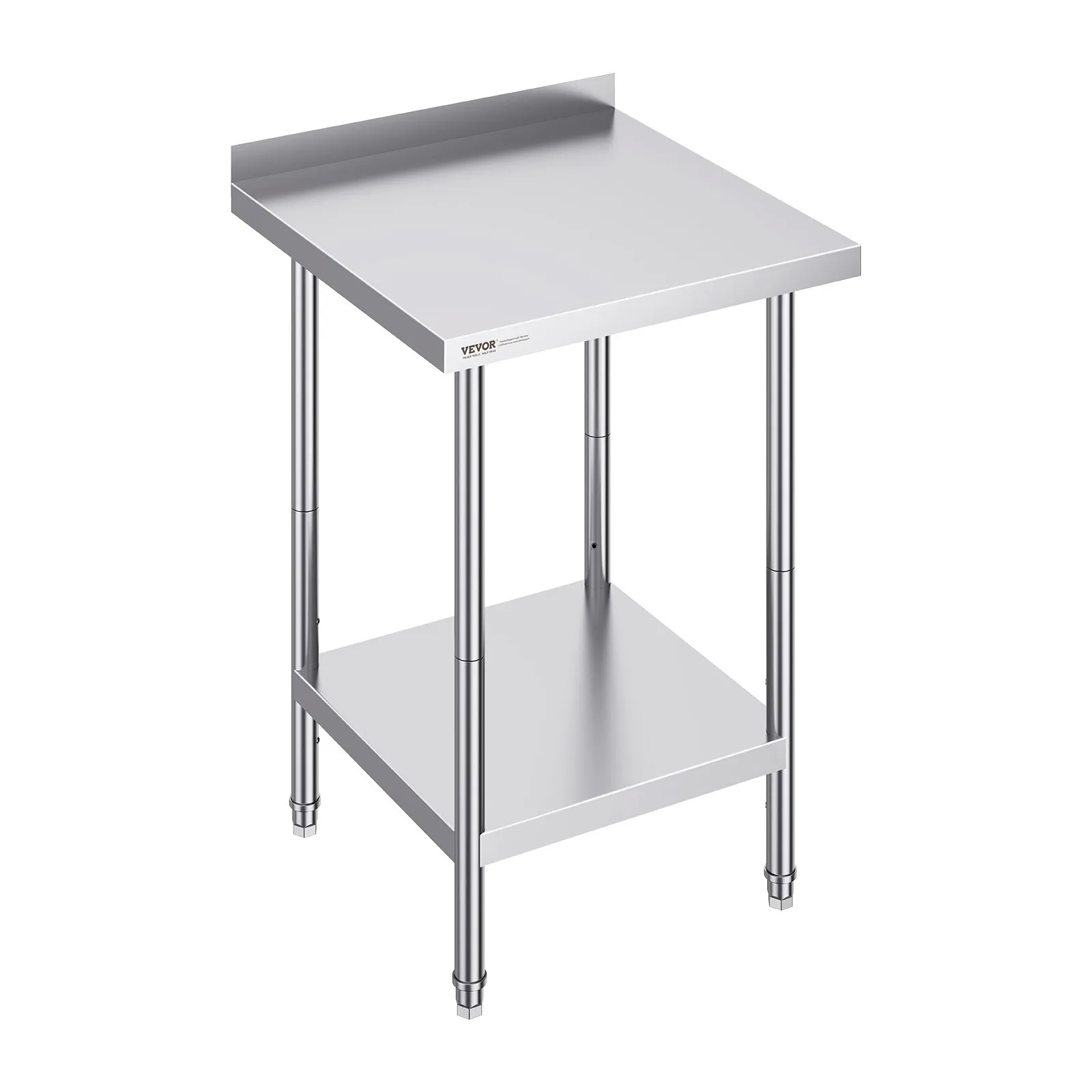 Pracovný stôl z nehrdzavejúcej ocele, komerčný pracovný stôl na prípravu jedál, robustný kovový pracovný stôl s nastaviteľnou výškou pre reštaurácie, domácnosti a hotely, 610 x 610 x 914 mm