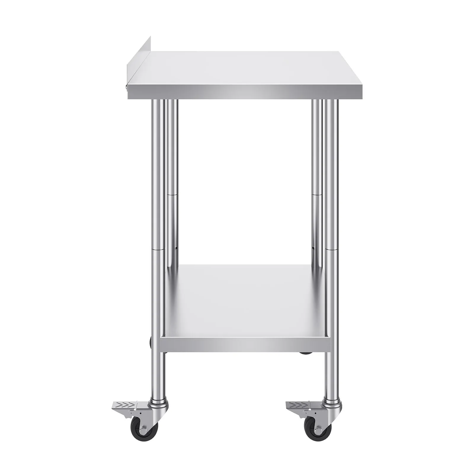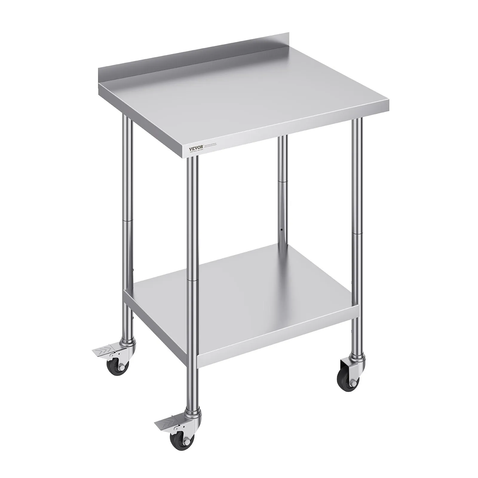 Pracovný stôl z nehrdzavejúcej ocele, komerčný pracovný stôl na prípravu jedál s kolieskami, pracovný stôl na prípravu jedál, výškovo nastaviteľný pracovný stôl pre reštaurácie a hotely, 610 x 762 x 1005,6 mm