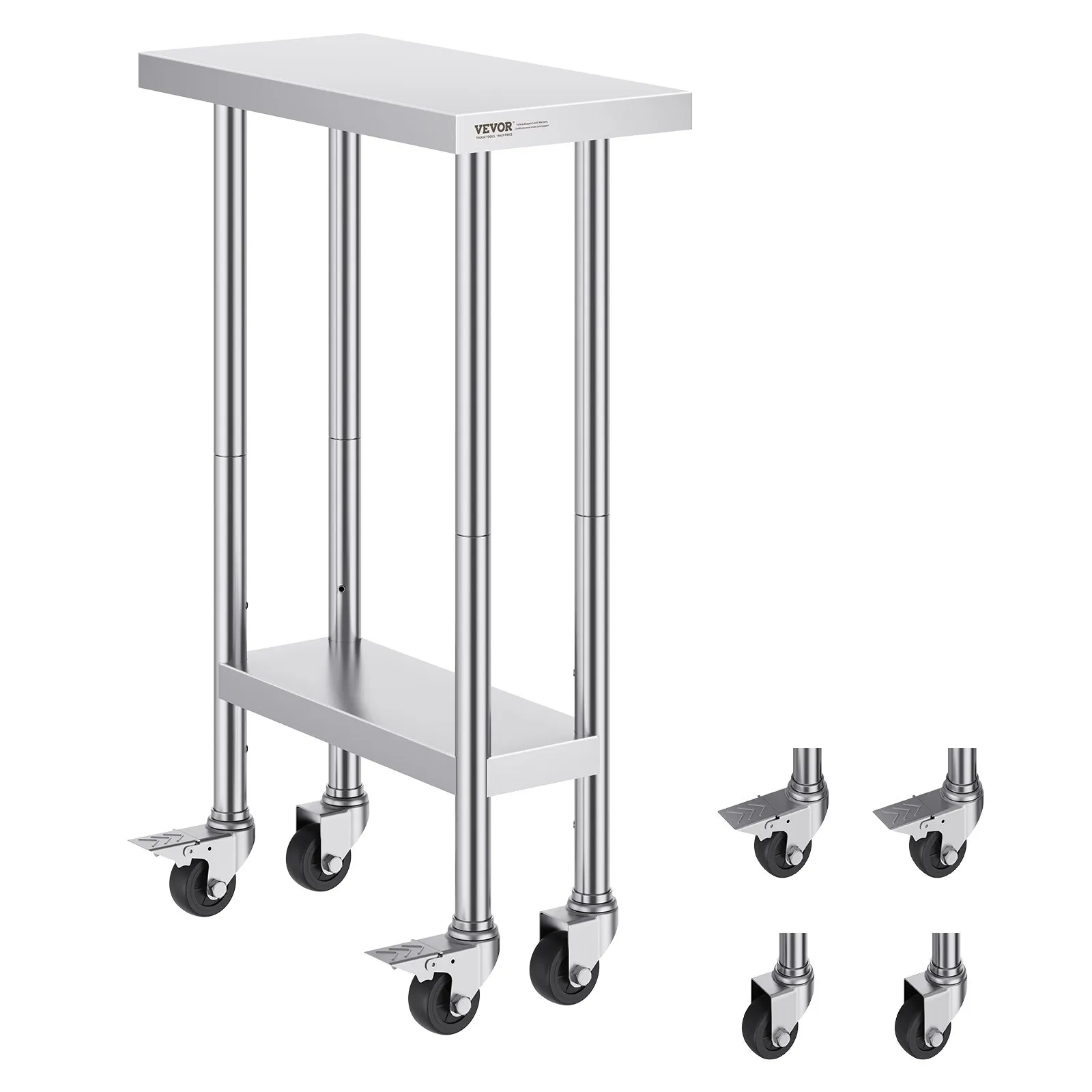 Pracovný stôl z nehrdzavejúcej ocele, mobilný prípravný stôl, 3 nastaviteľné výškové úrovne, robustný pracovný stôl na prípravu jedál v komerčných kuchyniach a reštauráciách, 610 x 350 x 954,6 mm