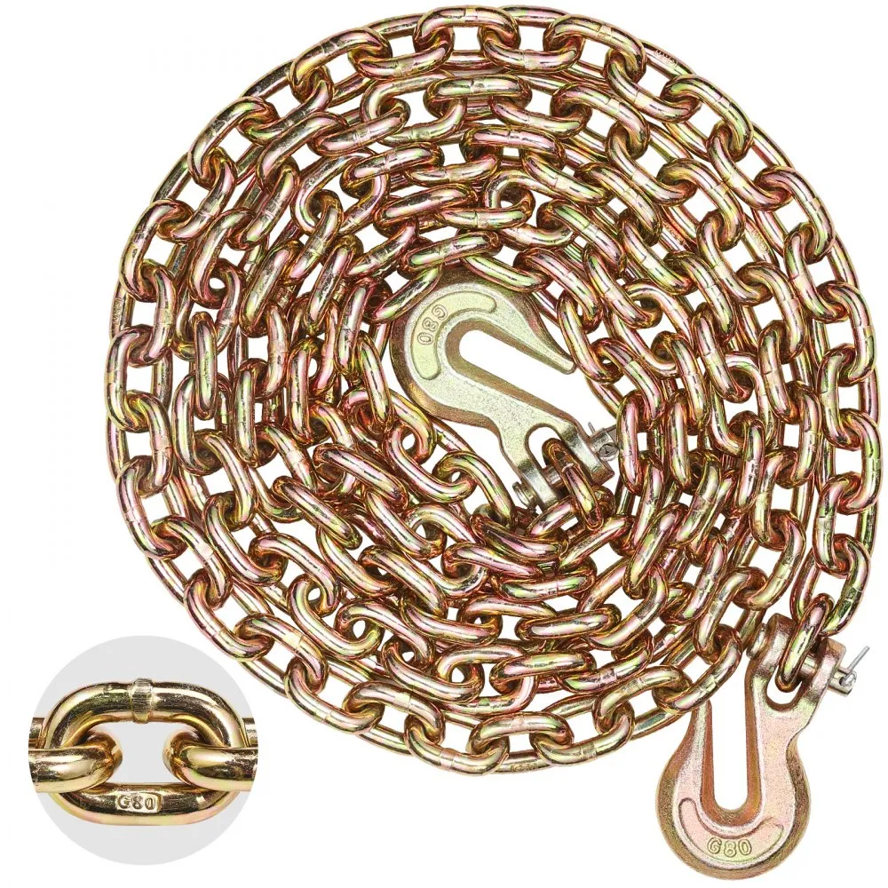 • Trieda pevnosti G80: Táto reťaz na viazanie triedou G80 sa pýši pôsobivou pevnosťou v ťahu! S dĺžkou 316 cm (10,3 stopy) a priemerom 8 mm (5/16 palca) vykazuje vysokú pevnosť v ťahu.