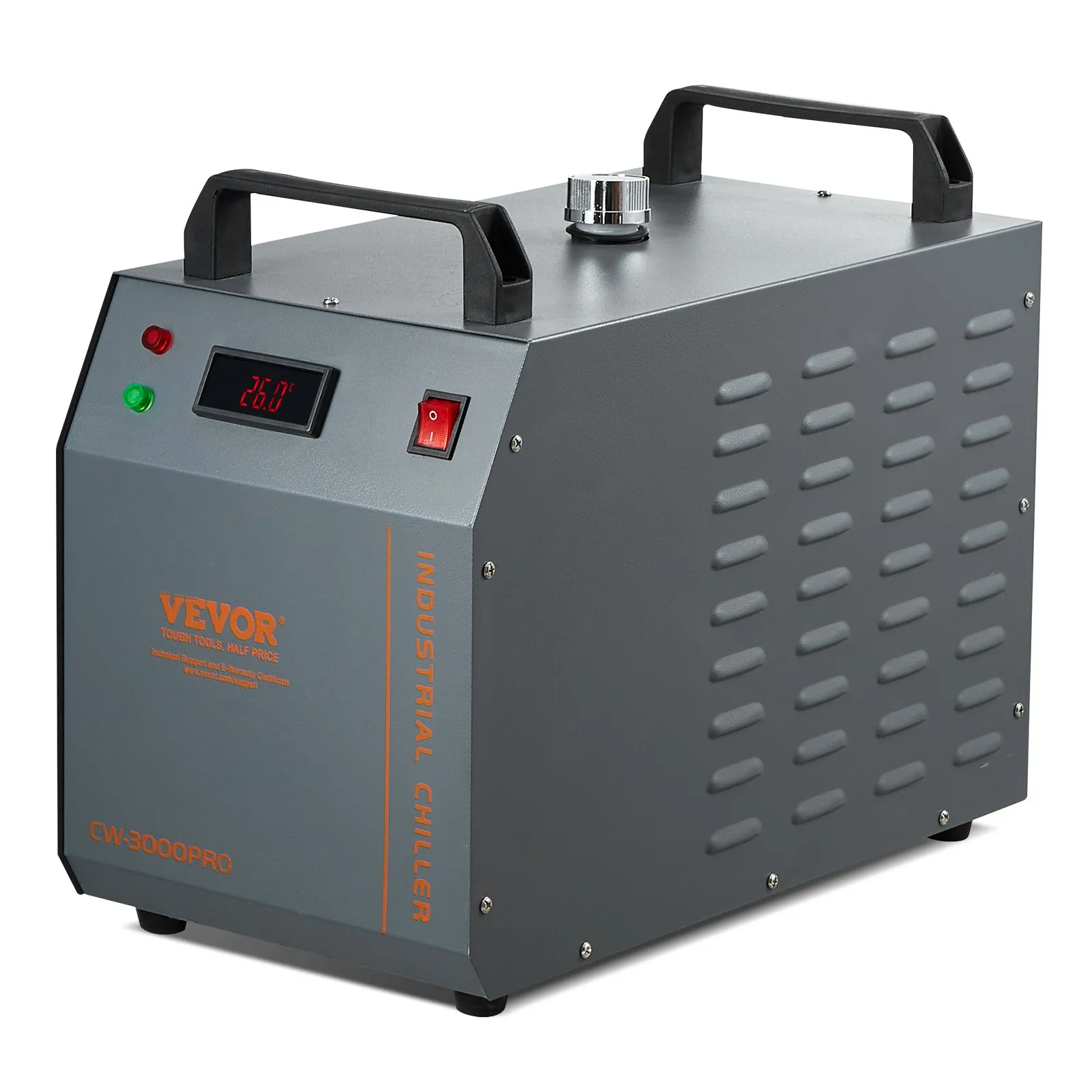 Priemyselný vodný chladič CW-3000 (PRO), 150 W vzduchom chladený priemyselný chladič vody s 12-litrovou nádržou na vodu, maximálny prietok 18 l/min, pre chladiace stroje pre laserové gravírovacie stroje