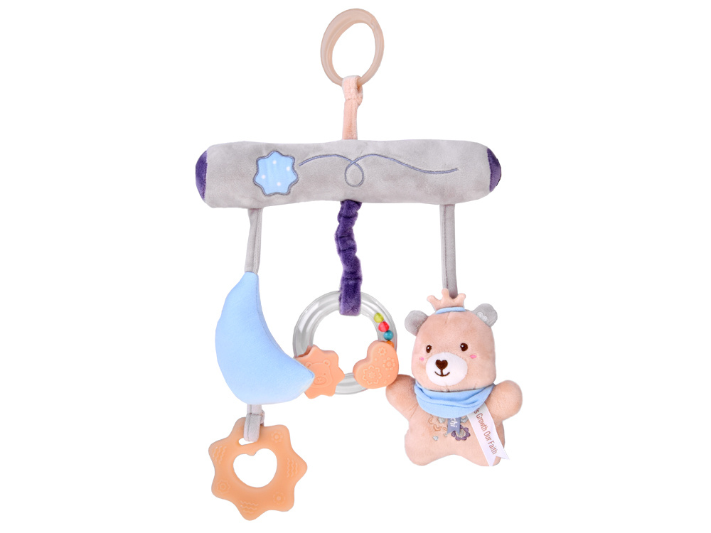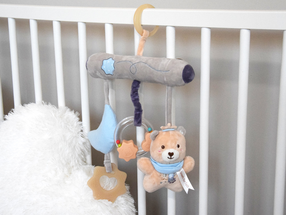 - Jednoduché pripevnenie – praktický držiak umožňuje zavesiť hračku do postieľky, kočíka alebo autosedačky.