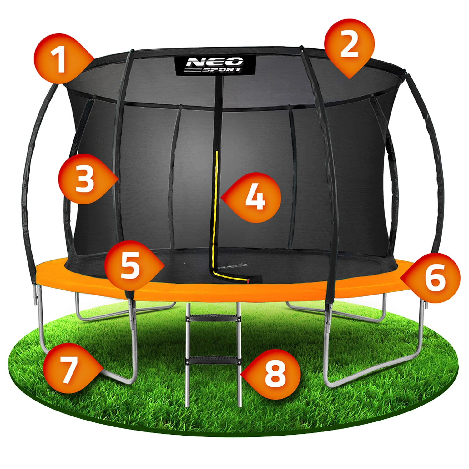 Profilovaná záhradná trampolína Neo-Sport s dĺžkou 374 cm a vnútornou sieťou