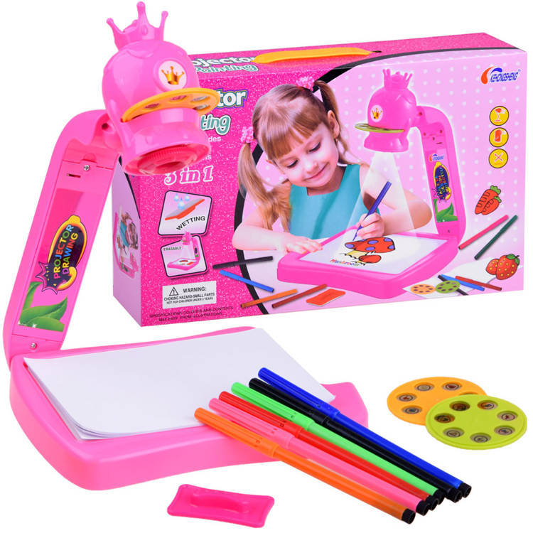 Skvelá voľba pre batoľa, ktoré rado maľuje a kreslí. Táto premietacia doska s tromi sadami vzorov na zobrazenie na doske alebo stene určite osloví každého mladého umelca. Projektor má nastaviteľné uhly sklonu, takže sa dá použiť na samotnej doske alebo premietať na stenu. Dá sa úplne zložiť a uskladniť v zásuvke – v zloženom stave zaberá veľmi málo miesta. Projektor má široké využitie, umožňuje vám premietať obrázky (zvieratá, autá, rôzne druhy jedál atď.) na dosku, ako aj večer na stenu. Táto krásne spracovaná doska vám poskytne veľa zábavy počas hry. Skvelá zábava je zaručená.