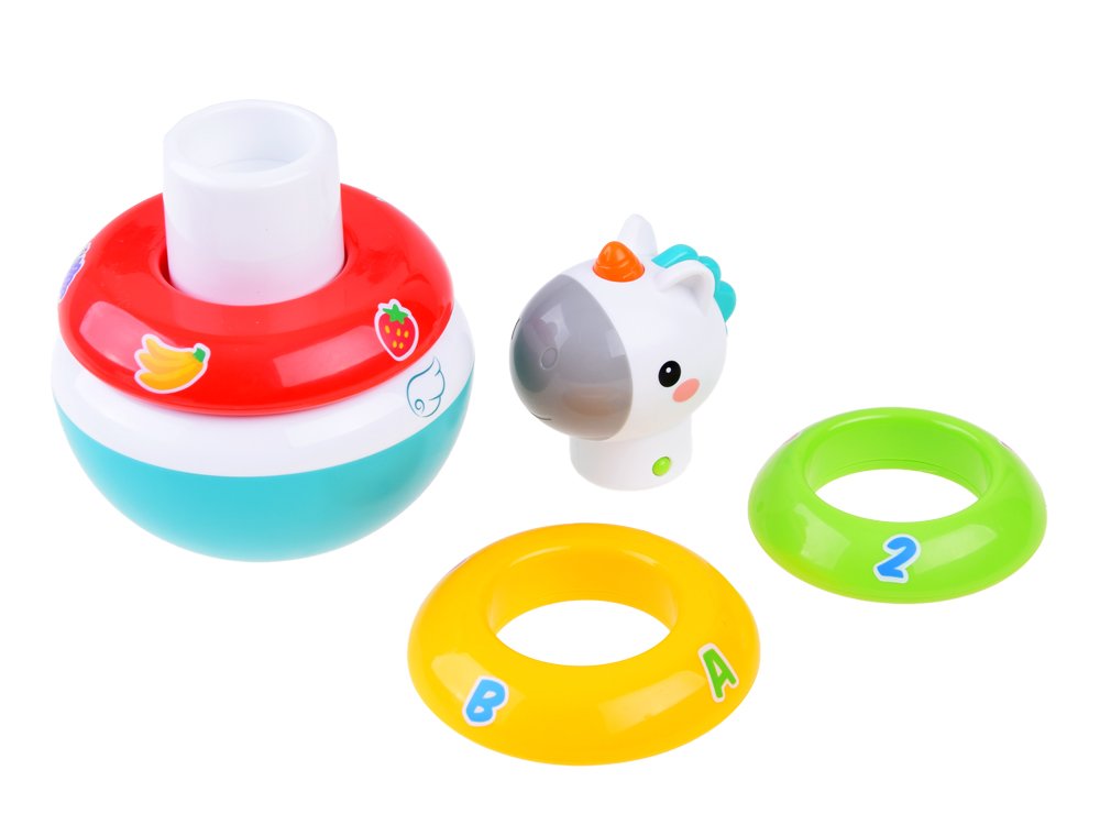 skladanie farebných obručí podľa veľkosti. Tento typ hry pomáha vášmu drobčekovi rozvíjať manuálnu zručnosť, logické myslenie a rozpoznávanie farieb.