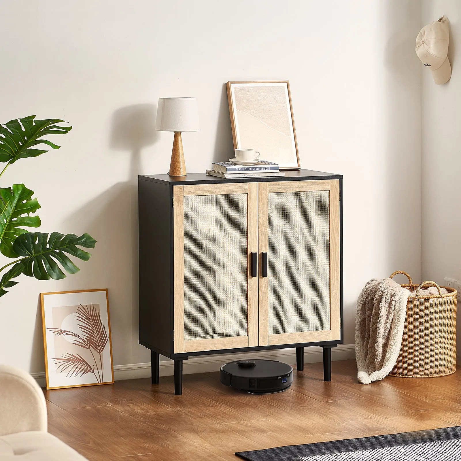 Ratanová skrinka, Ratanová komoda, 1 ks. Úložná skrinka s 2 magnetickými dvierkami, Príborník/bufetová skrinka s nastaviteľnými policami, Ideálne do chodby, vstupného priestoru, obývačky alebo kuchyne
