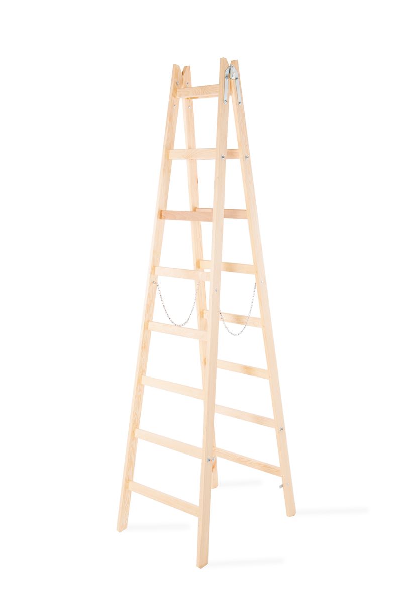 Dvojitý drevený rebrík Strend Pro s 8 priečkami sa vyznačuje pevnou a stabilnou konštrukciou, ktorá zaručuje bezpečnú prácu vo výške. Je vyrobený z impregnovaného borovicového dreva a obsahuje aj kovové pozinkované časti vysokej kvality. Oceľová reťaz zamedzuje rozovretiu rebríka. Výhodou je poistka pre bezpečnú a pohodlnú prepravu. Nosnosť je 150 kg. Vyrobené v EÚ.
