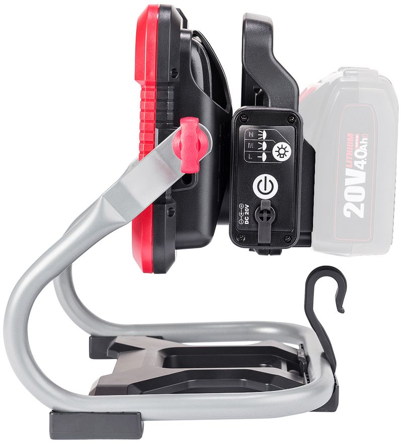 V prípade, že nemáte k dispozícii akumulátor, je možné reflektor napájať pomocou 20V sieťového adaptéra (nie je súčasťou balenia).
