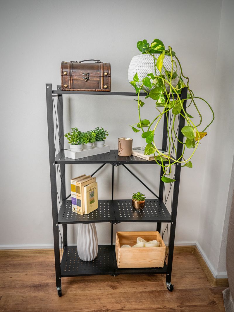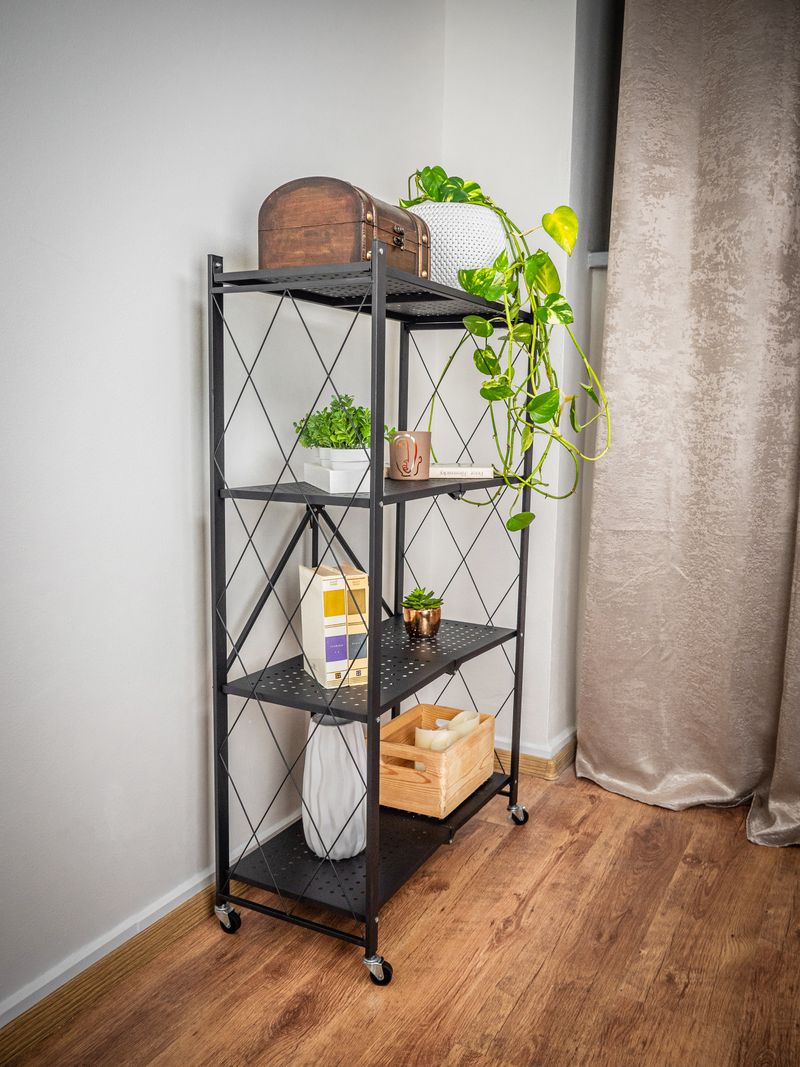 4-policový skladací a pojazdný regál MagicHome je praktický pomocník v domácnosti všade tam, kde potrebujete niečo uskladniť. Regál je celý kovový v elegantnom dizajne, jeho celková nosnosť je 200 kg a nosnosť jednej police je 50 kg pri rovnomernom zaťažení. Hlavnou výhodou regálu je jeho skladnosť a pojazdnosť. Vrchná časť sa jednoducho odmontuje a zvyšné police sa dajú jednoducho sklopiť, preto keď ho nepoužívate, jednoducho ho odložíte a vyberiete v prípade potreby. Keďže je postavený na 4 kolieskach, veľmi jednoducho ho presuniete a zabrzdíte 2 brzdami. Celkové rozmery regálu: 127x72x34 cm.