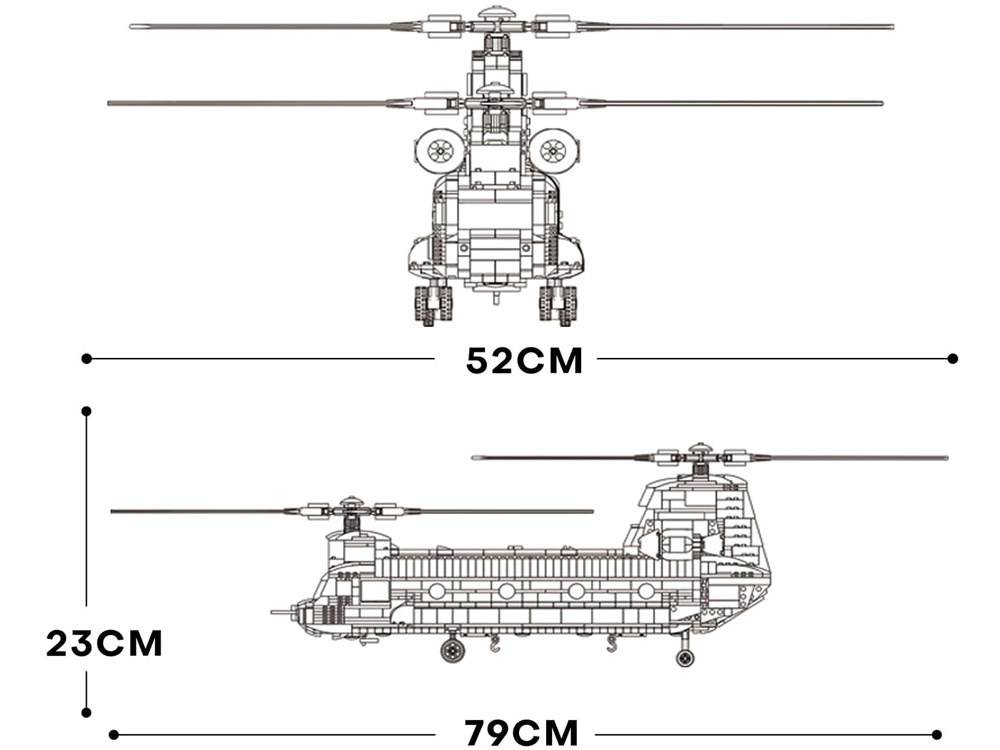 Stavba tohto modelu je skutočným potešením pre nadšencov armády, modelovania a technológií. Každý prvok bol starostlivo navrhnutý tak, aby vytvoril robustnú a realistickú konštrukciu, ktorá verne zachytáva vzhľad legendárneho vrtuľníka CH-47 Chinook. Nie je to len sada stavebných kociek – je to jedinečný staviteľský zážitok, ktorý poskytuje uspokojenie a zároveň pôsobivý model do vašej zbierky.