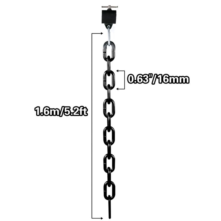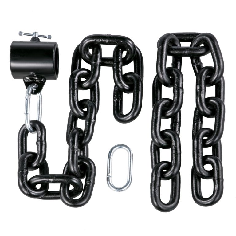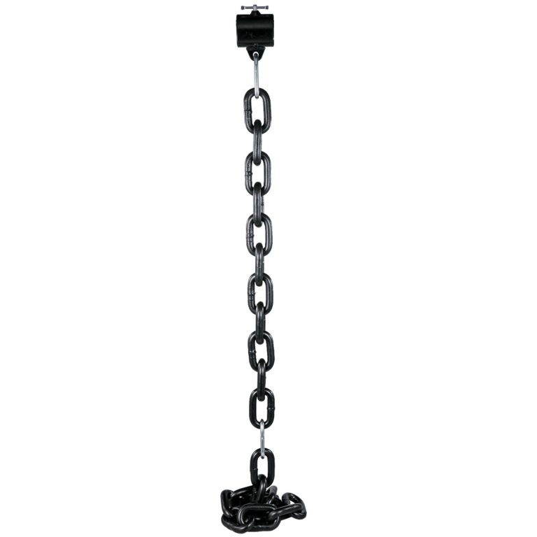Jednoduché pripojenie – Každá cvičebná reťaz má jeden oceľový čierny golier s L skrutkou na zaistenie zámku. Obojok čiernej tyče má rozmery 5 cm x 8 cm (priemer, dĺžka). Tieto záťažové reťaze na lavičku sa teda dajú ľahko pripevniť na akékoľvek tyče alebo z nich odňať.