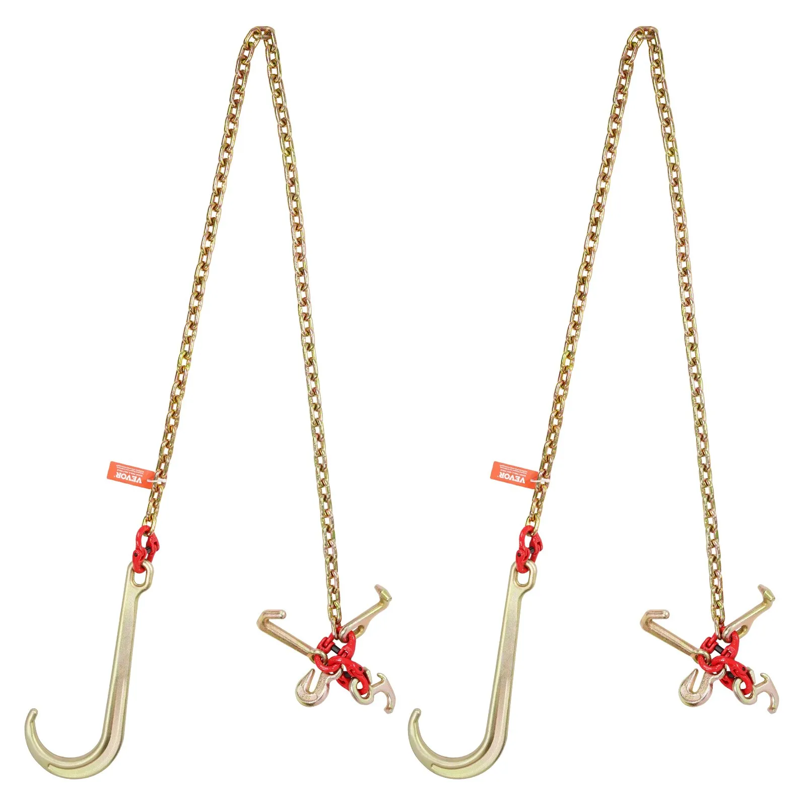Reťaz s J-hákom, 2 kusy, ťažná reťaz G80 s dlhým ramenom 15 palcov, háková reťaz s J-hákom RTJ a záchytným hákom, pracovné zaťaženie 5400 libier, reťaz pre ťažké nákladné vozidlá na ťahanie odťahových prívesov