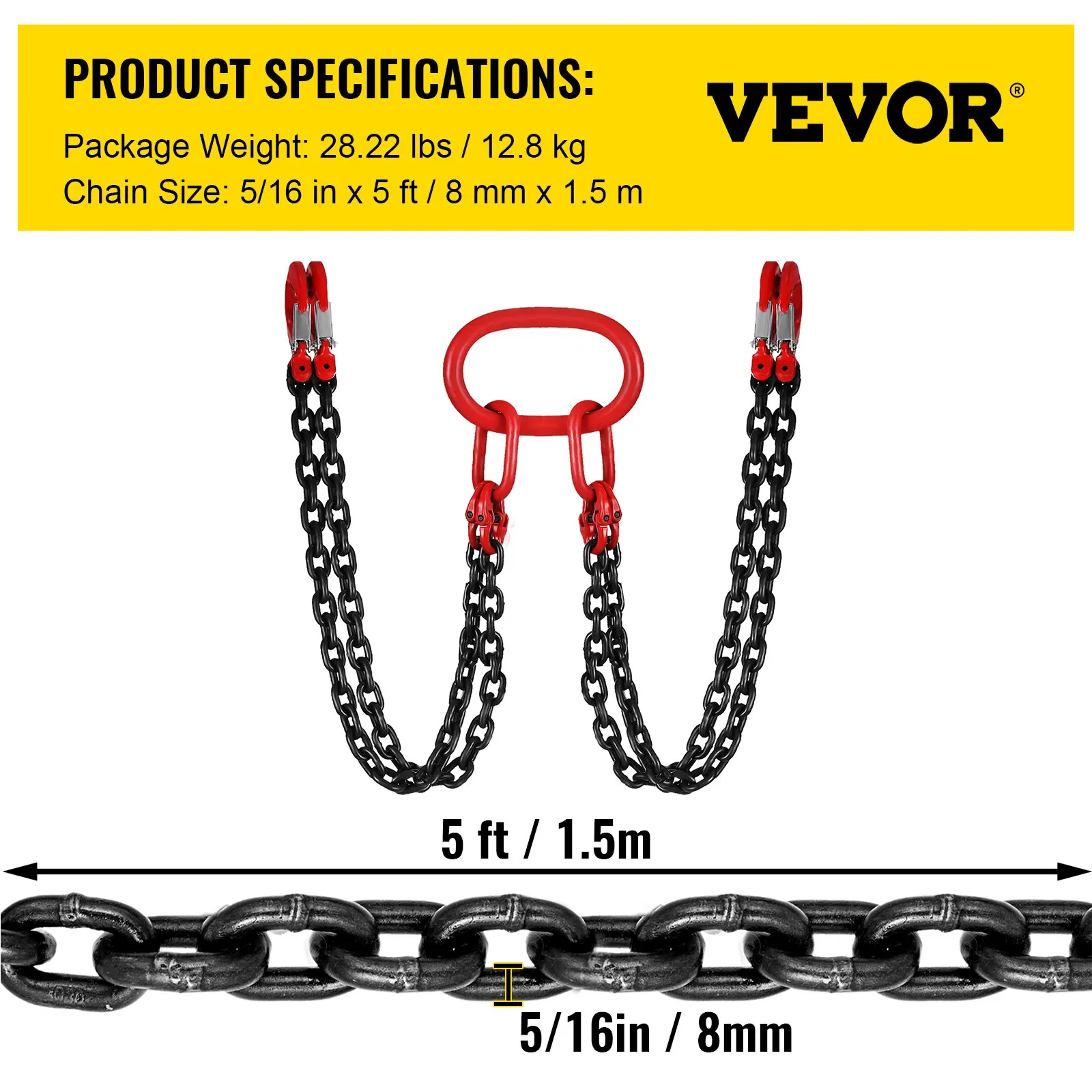 【NOSNOSŤ 11 000 LIBIER】 – Dĺžka reťaze: 1,5 m. Priemer reťaze: 8 mm. Pevnosť v pretrhnutí je viac ako 800 MPa. Pracovná kapacita: 11 000 libier. Tento produkt môžete používať s vysokou bezpečnostnou rezervou.