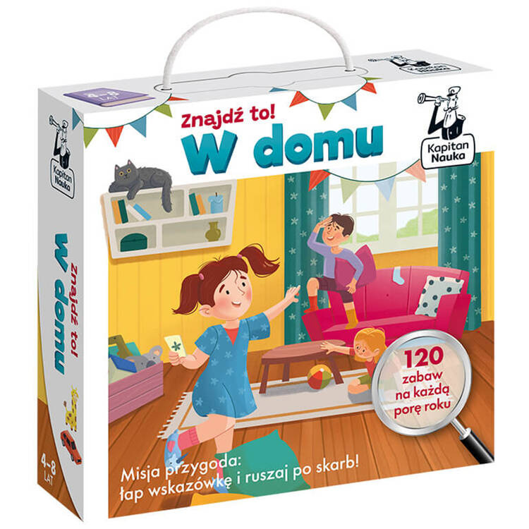 Nájdi to! Doma je sada 120 hier pre každé ročné obdobie, ktoré poskytujú skvelú alternatívu k sedeniu pred počítačom alebo televízorom. Sú ideálne počas choroby, nepriaznivého počasia alebo ako spôsob, ako stráviť čas s rodinou. Táto vzrušujúca hra vám poskytne hodiny neuveriteľnej zábavy.