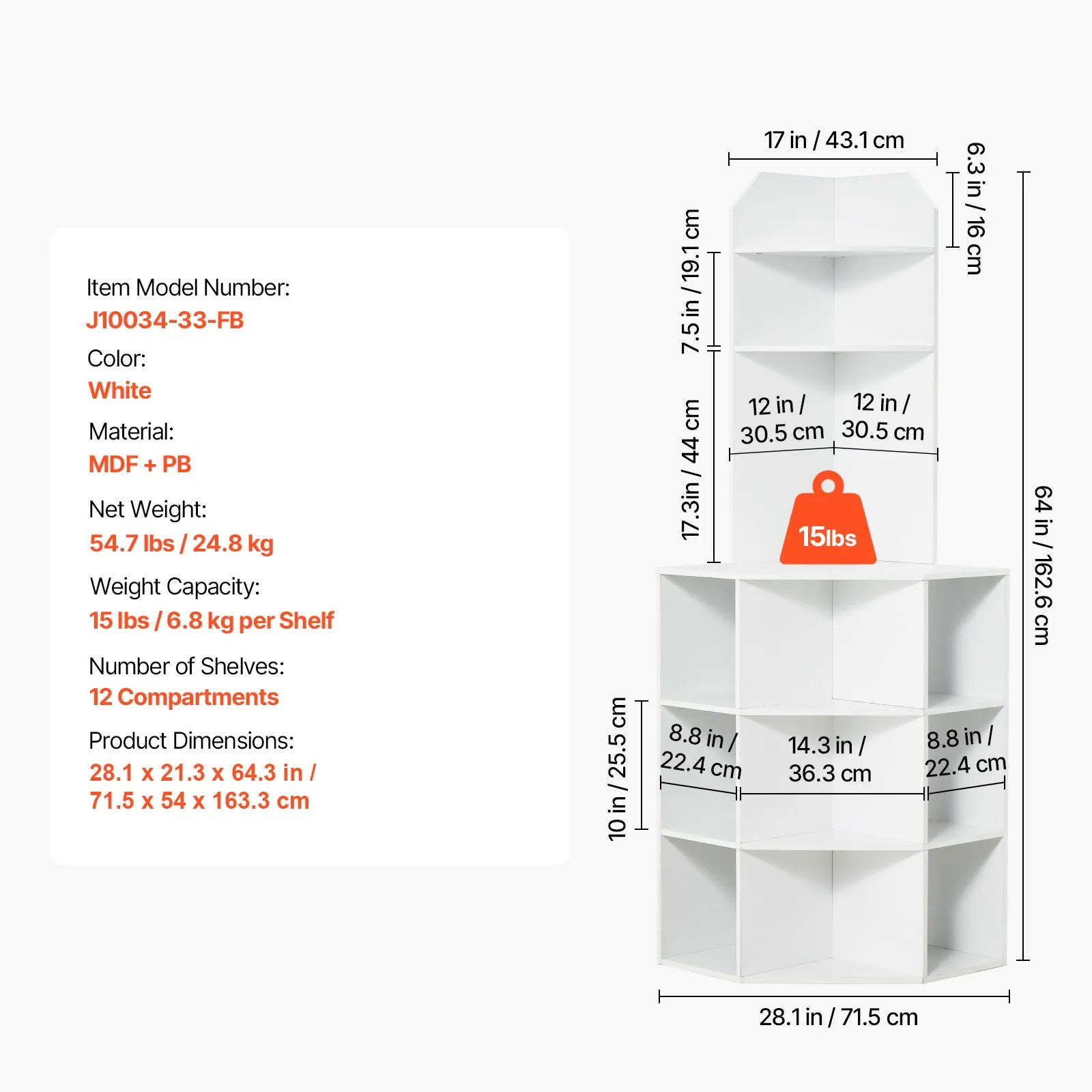 Organizovaný úložný priestor s 12 priehradkami: Táto rohová skrinka s 12 priehradkami vám umožní úhľadne usporiadať slúchadlá, knihy, dekoratívne predmety a ďalšie veci. Vďaka nastaviteľným policiam (0 – 2,2 palca / 0 až 55 mm) si môžete jednoducho prispôsobiť priestor na uloženie riadu, tašiek, fotoalbumov a ďalších nevyhnutností.
